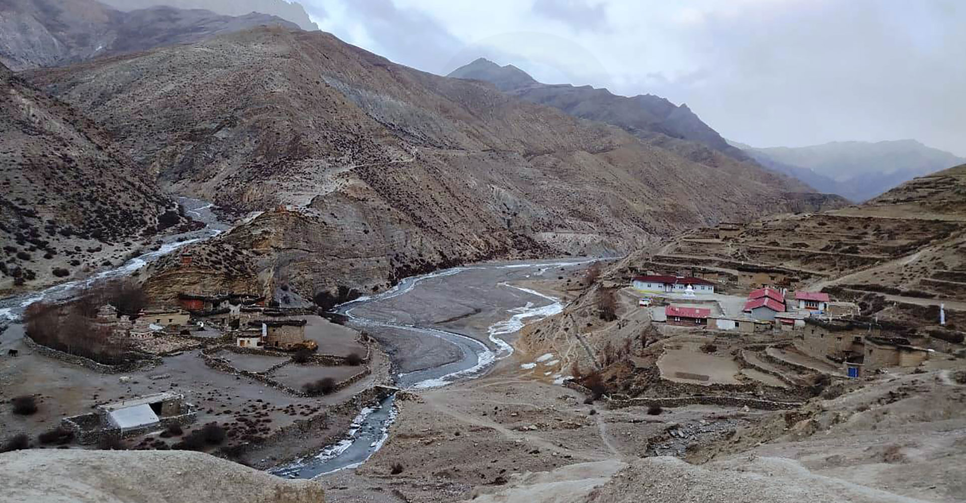 डोल्पाको शे–फोक्सुण्डो गाउँपालिका–४ नाम्दो गाउँ । यहाँ आकाशमा बादल देखिनबित्तिकै हिमपात हुने गर्दछ