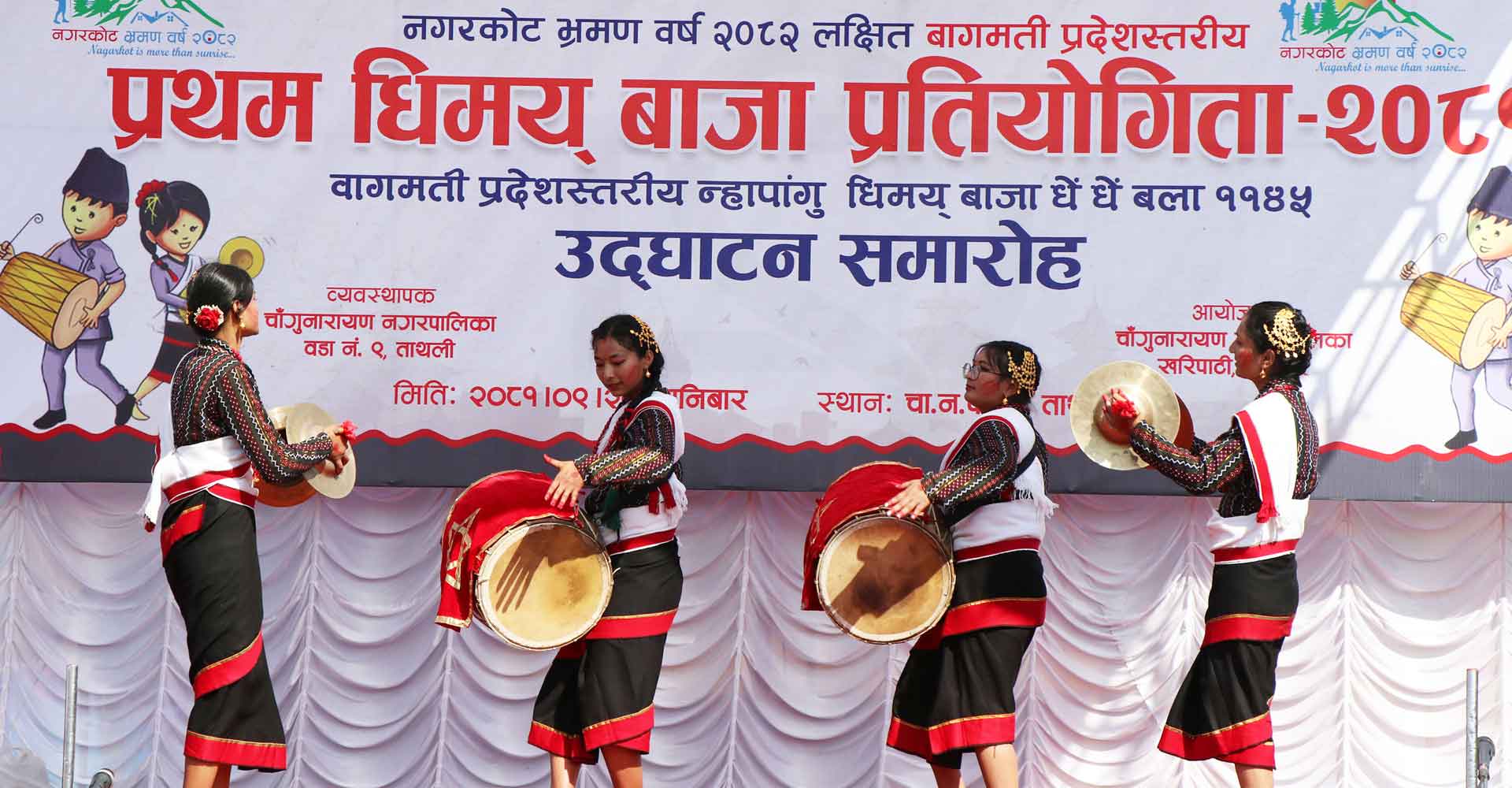 नगरकोट महोत्सव–२०८२ लाई लक्षित गर्दै शनिबार चाँगुनारायण नगरपालिकाले आयोजना गरेको प्रथम बागमती प्रदेशस्तरीय धिमे बाजा प्रतियोगितामा सहभागिता जनाउँदै प्रतिस्पर्धी