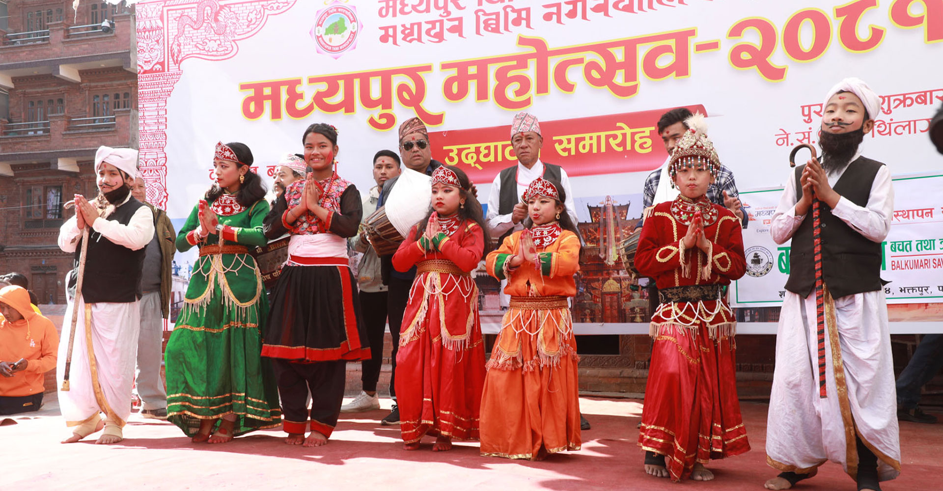 मध्यपुर महोत्सव–२०८१ को अन्तिम दिन आइतबार बालकुमारी परिसरमा ईन्द्रअप्सरा नाच प्रदर्शन गर्दै