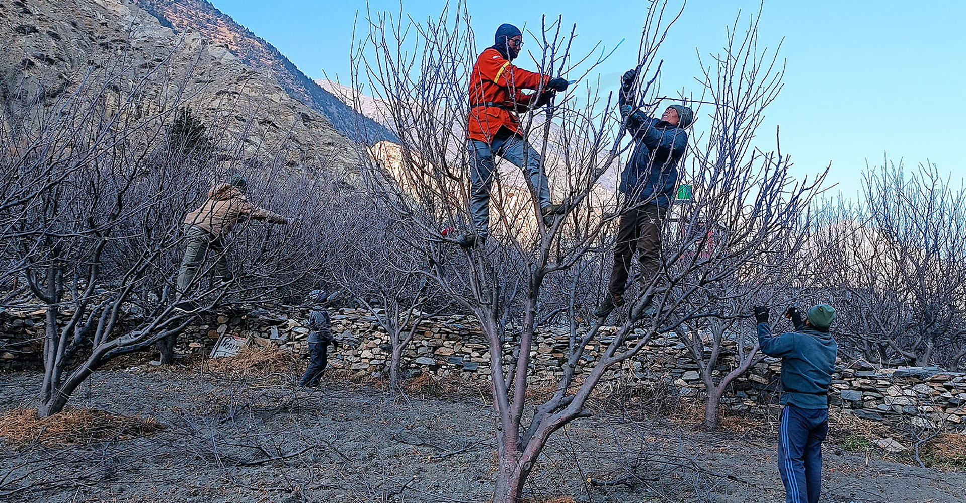 स्याउको राजधानीको रुपमा परिचित मुस्ताङमा हिउँदेयाम सुरु भएसँगै स्याउको रुख काँटछाँट गर्न व्यस्त किसान