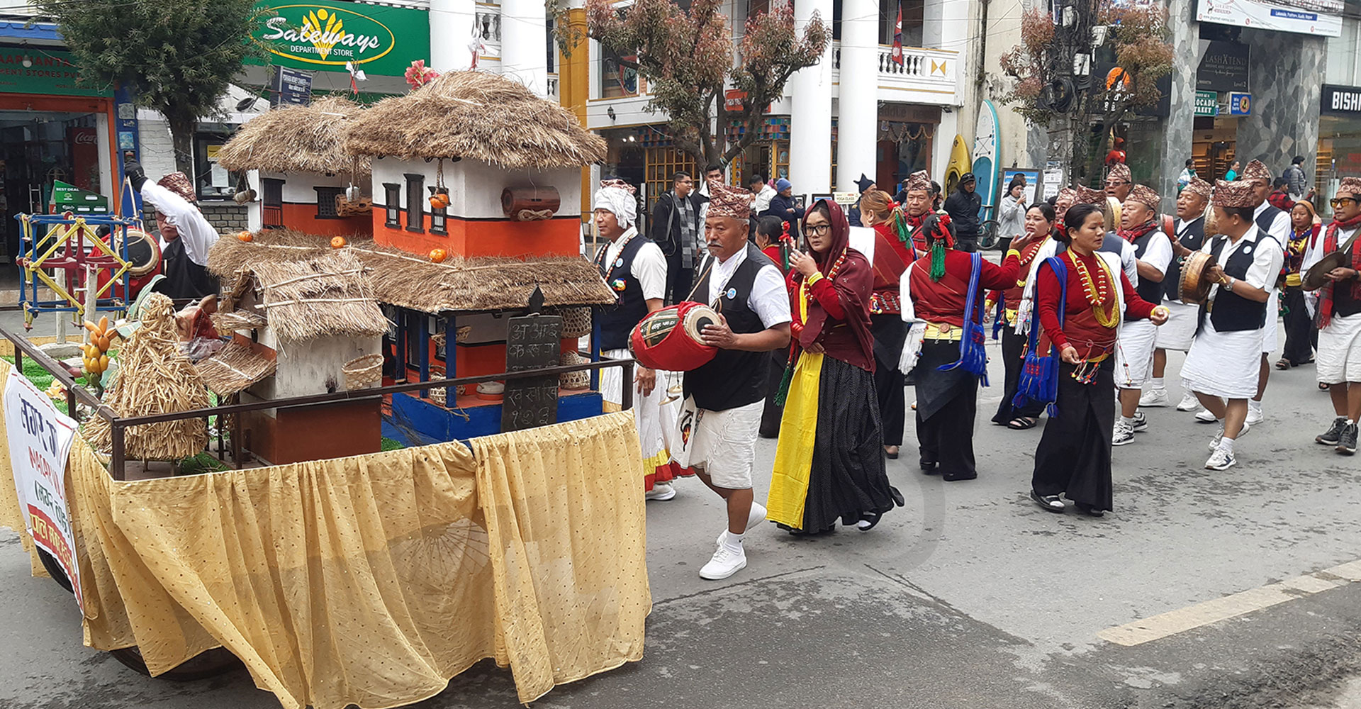 अंग्रेजी नयाँ वर्षको अवसरमा रेस्टुरेन्ट एन्ड बार एसोसिएसन (रेबान) पोखराको आयोजनामा पोखरामा शनिबारदेखि सुरु पोखरा सडक महोत्सवको उद्घाटन पूर्व निकालिएको झाँकीका सहभागी