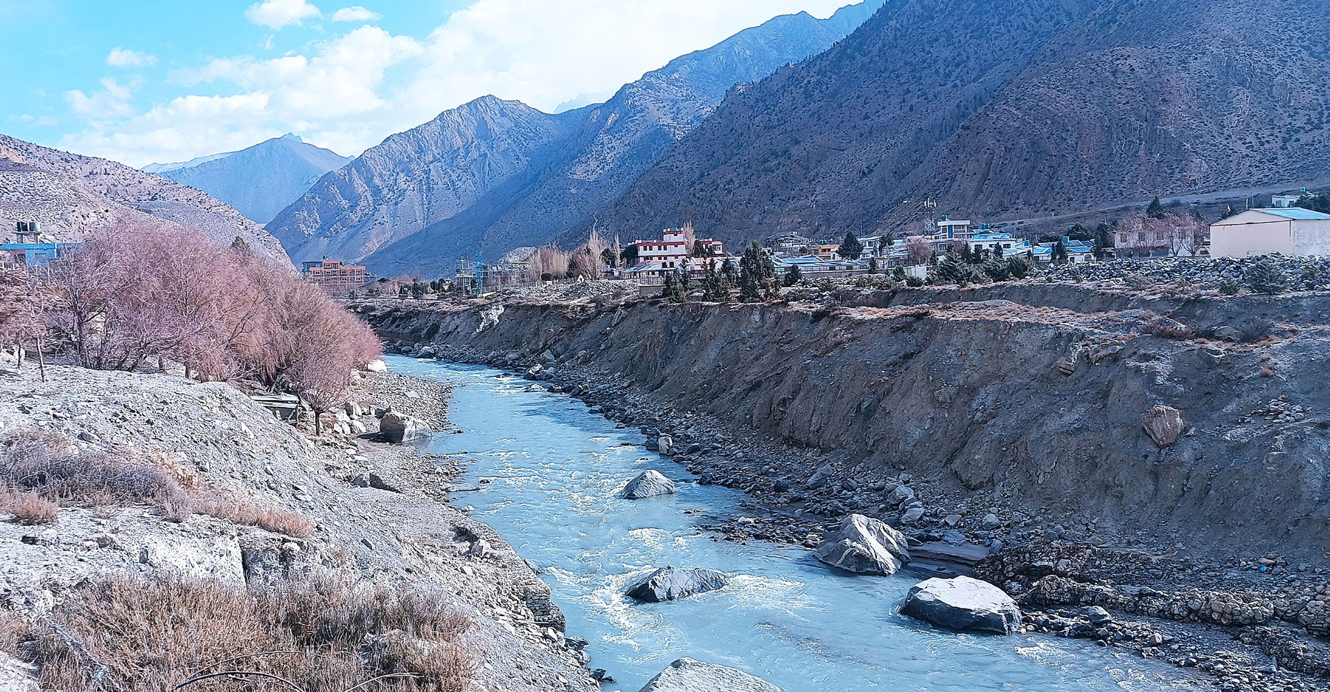 हिमालपारिको जिल्ला मुस्ताङको सदरमुकाम नजिकै कालीगण्डकी नदीले कटान गरेको तटीय क्षेत्र । वर्षायाममा आएको बाढीले कटान गर्दा मुस्ताङको दर्जनौँ बस्ती असुरक्षित बन्दै गएको छ