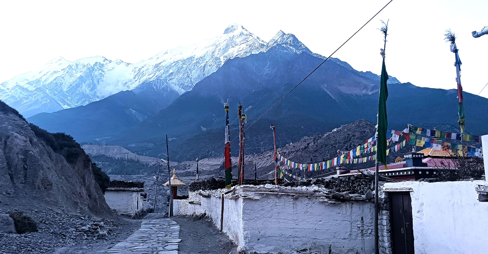 मौसम खुलेसँगै मुस्ताङ जिल्ला घरपझोङ गाउँपालिका-३ स्याउगाउँबाट देखिएको निलगिरी हिमाल