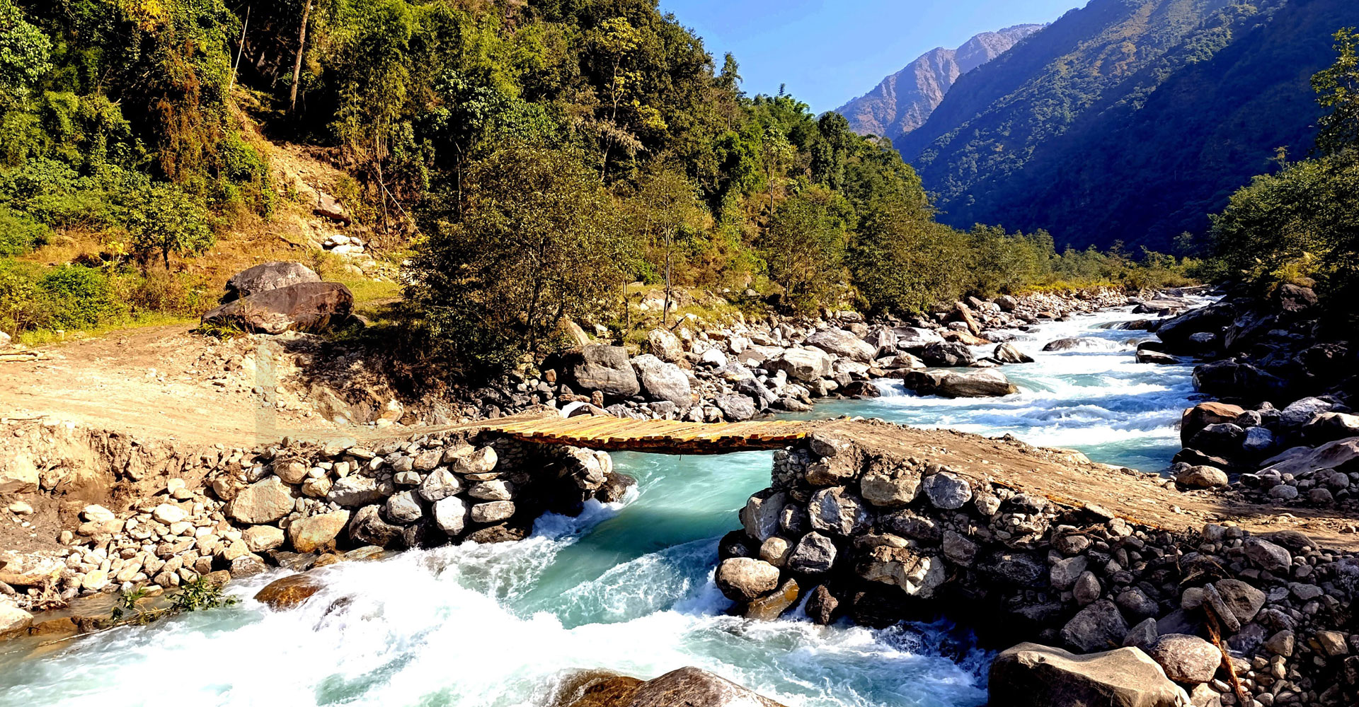 ताप्लेजुङको फक्तङ्लुङ गाउँपालिकामा तमोर नदीमाथि निर्माण गरिएको अस्थायी काठेपुल