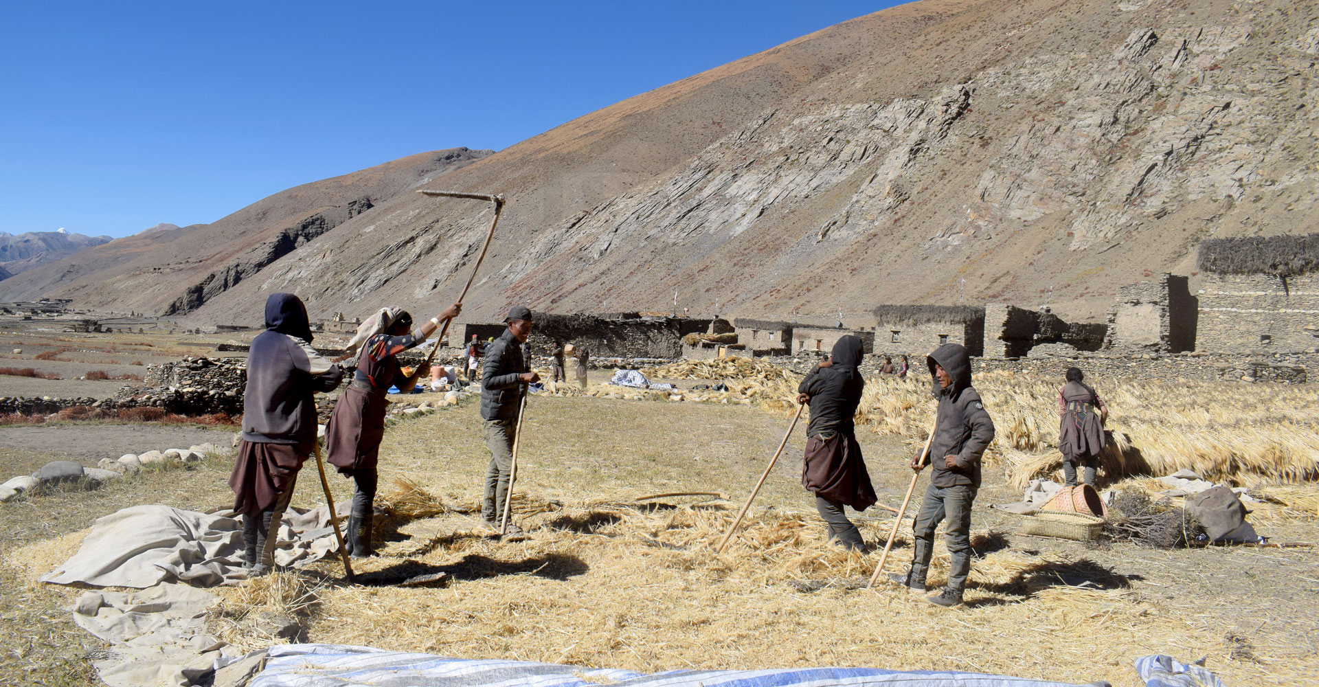डोल्पाको उत्तरी क्षेत्रमा पर्ने उपल्लो डोल्पाको डोल्पोबुद्ध गाउँपालिका–५ तिन्जेमा उवा चुट्दै कृषक। उच्च हिमाली क्षेत्रमा पर्ने उपल्लो डोल्पाका खेतबारीमा वर्षमा एक बाली मात्र उत्पादन हुने गर्छ