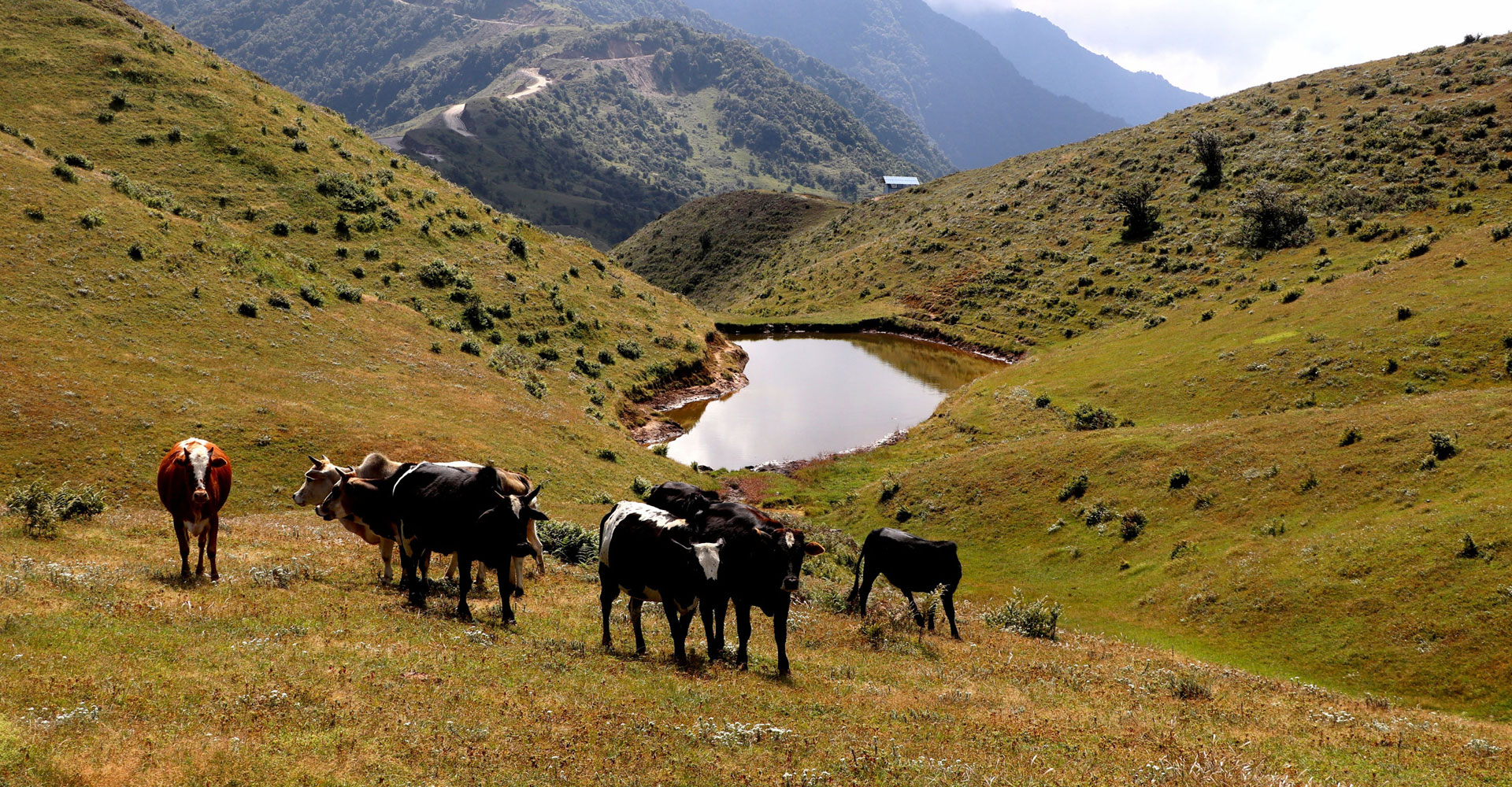 भोजपुरको पर्यटकीय क्षेत्र चखेवामा चरनक्षेत्रमा रहेका गाईवस्तु । मुन्दुम पदमार्गमा पर्ने यो क्षेत्र पर्यटकको रोजाईको गन्तव्य हो