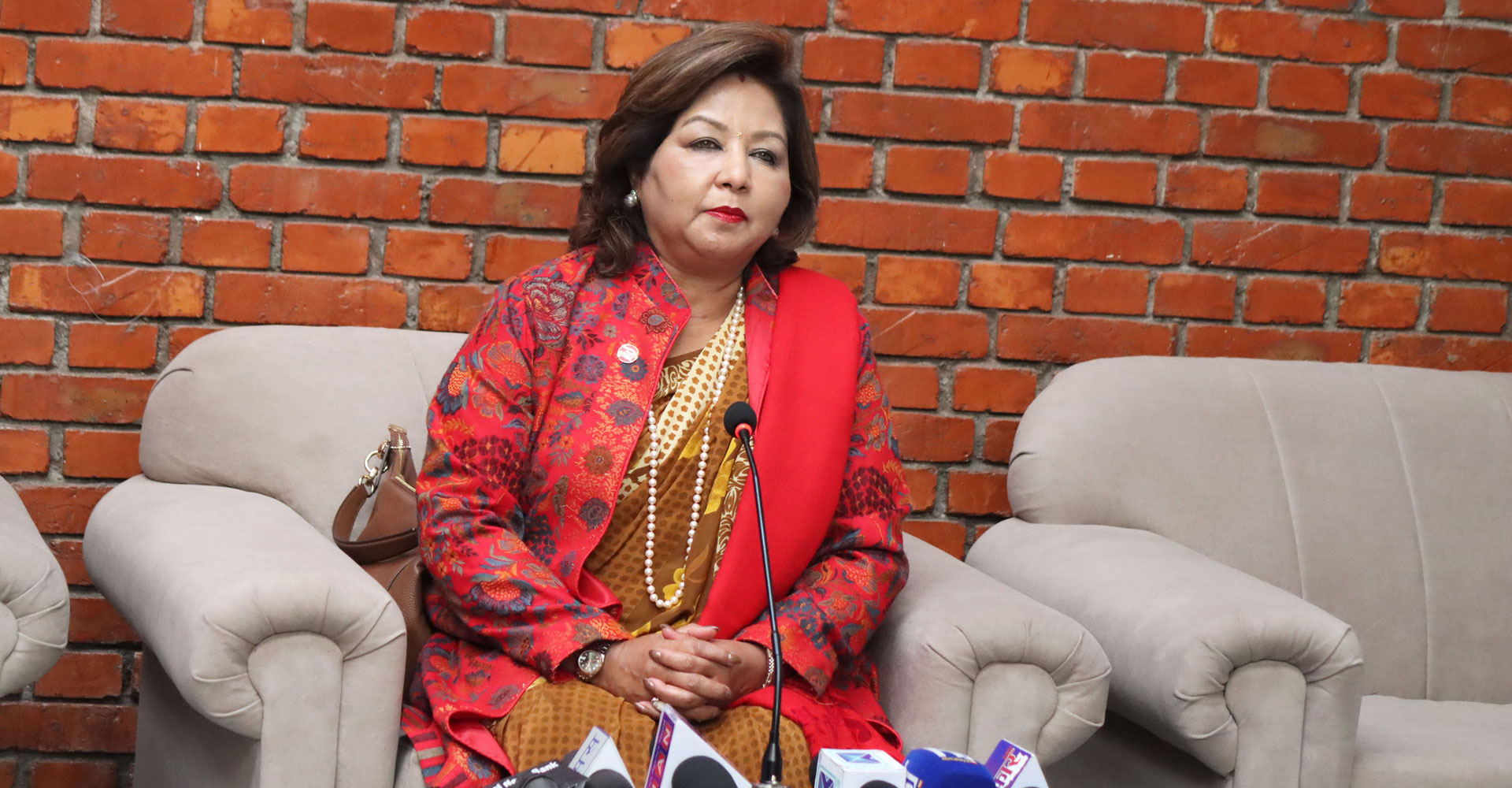 परराष्ट्रमन्त्री डा आरजु राणा देउवा चीनको औपचारिक भ्रमण सकेर शनिबार स्वदेश फर्केने क्रममा त्रिभुवन अन्तर्राष्ट्रिय विमानस्थलमा सञ्चारकर्मीलाई भ्रमणबारे जानकारी दिँदै