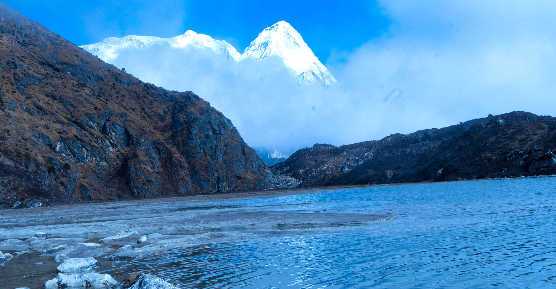 ताप्लेजुङको सिरिजङ्घा गाउँपालिकामा पर्ने कञ्चनजङ्घा हिमालको दक्षिणी आधार शिविर पदमार्गअन्तर्गतको लाप्साङ पोखरी क्षेत्रबाट देखिएका छ हजार ६८२ मिटर उचाइको राथोङ पिक र सात हजार ३३५ मिटर उचाइको काब्रु पिक हिमालको मनमोहक दृश्य
