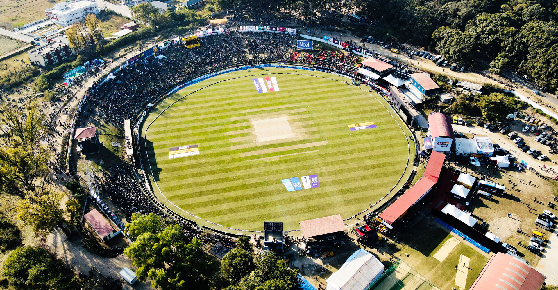 कीर्तिपुर किक्रेट मैदानमा जारी नेपाल प्रिमियर लिग (एनपीएल) क्रिकेट प्रतियोगितामा कर्णाली याक्स र जनकपुर बोल्ट्सबीचको प्रतिस्पर्धाका क्रममा ड्रोनबाट देखिएको दृश्य