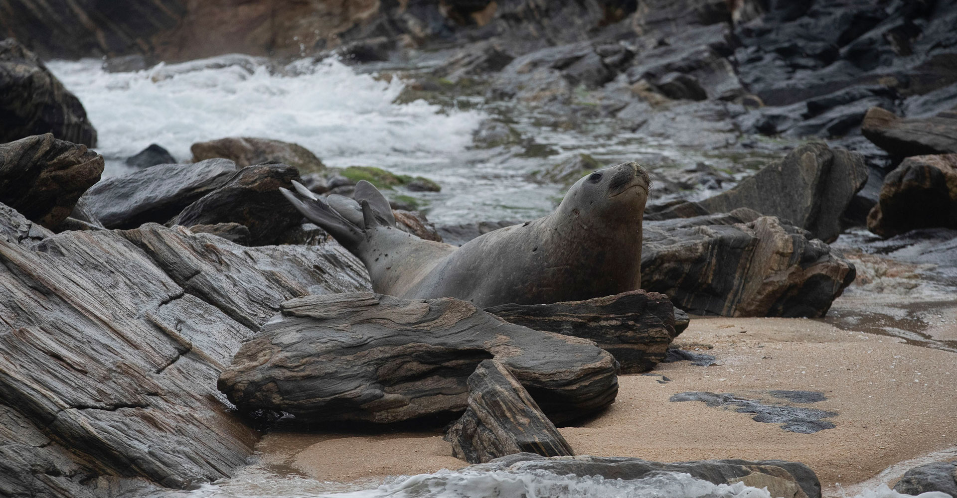 A elephant seal lounges on Jacone Beach in Marica, Rio de Janeiro state, Brazil