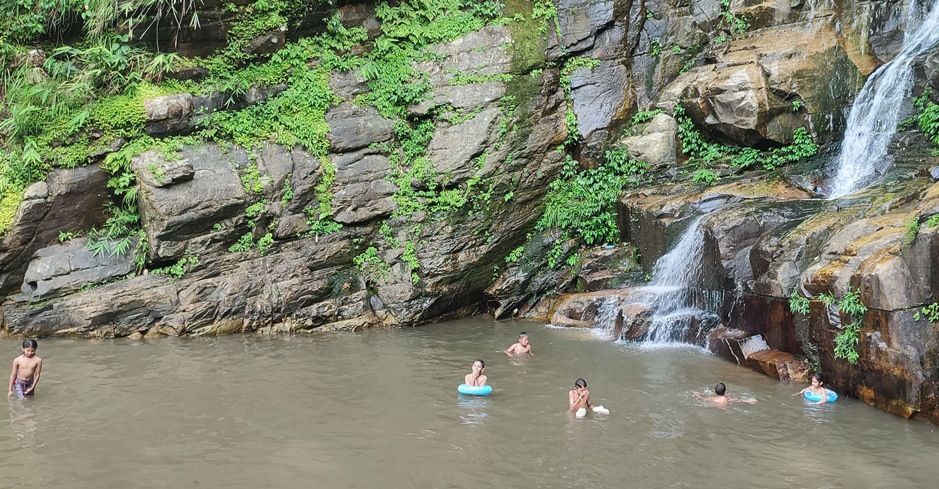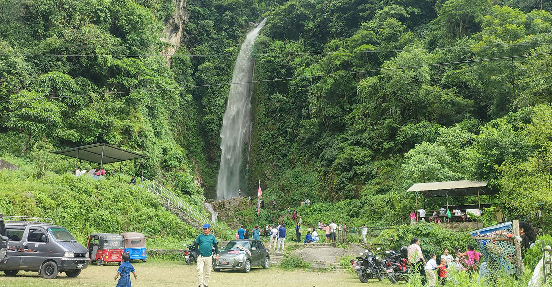 अन्नपूर्ण पदमार्ग छेउमै रहेको मर्स्याङ्दी गाउँपालिका–७ स्थित हामखोलाको झरनामा रमाउँदै आन्तरिक पर्यटक