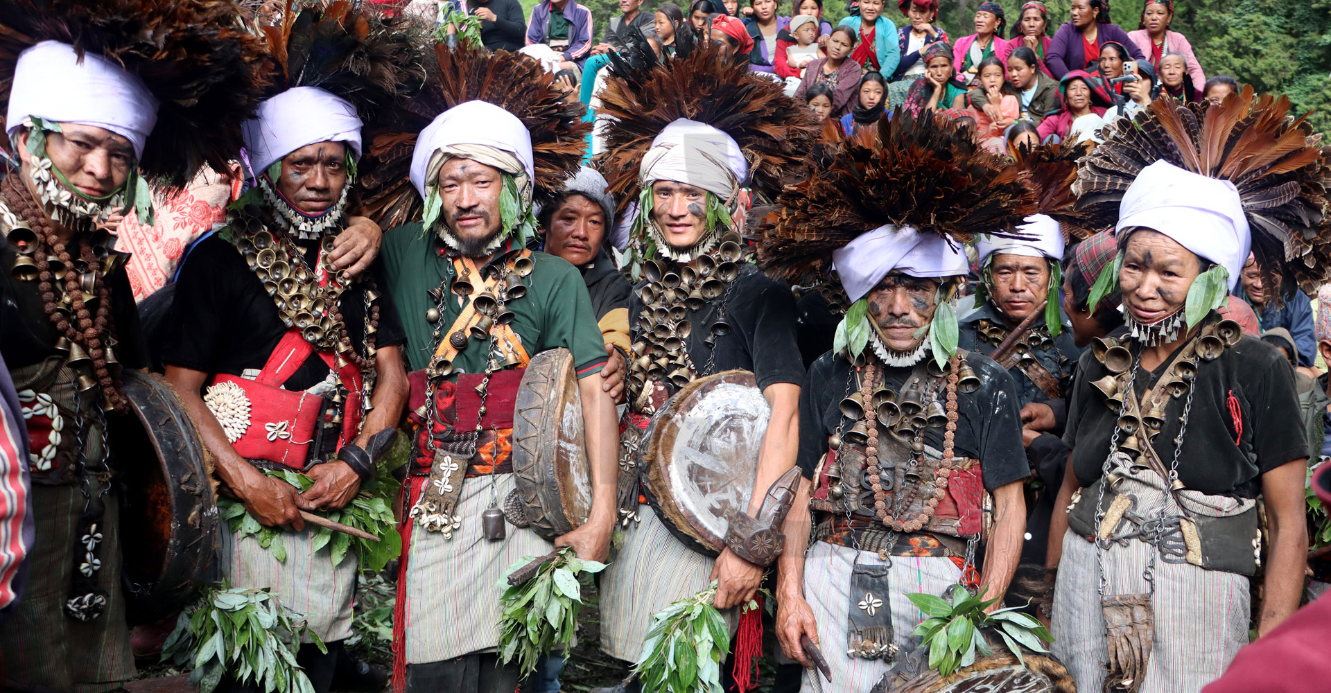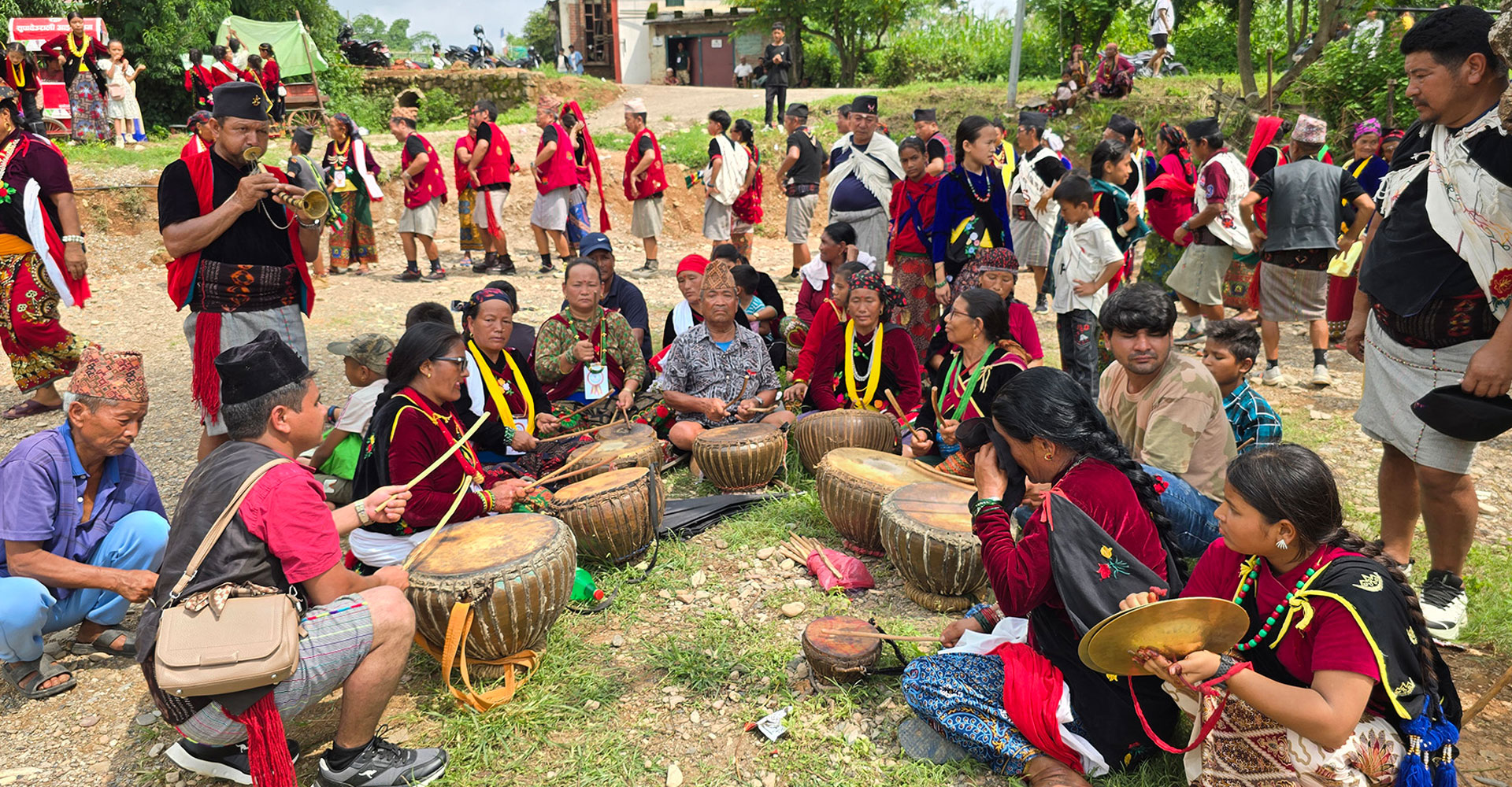 दाङको घोराही उपमहानगरपालिका–१३ स्थित बडहरा रातमाटामा रोल्पाली उवा घुसबाङ खाम समाज दाङले आयोजना गरेको राँके तिवार पर्वको अवसरमा आयोजना गरेको कार्यक्रममा शनिबार मौलिक लोकोबाङ्गे बाजा बजाउँदै समाजका स्थानीय । राँके तिवार पर्व परापूर्वकालदेखि हरेक वर्ष साउन १ गतेदेखि ५ गतेसम्म नाचगान गरेर मनाउने चलन छ