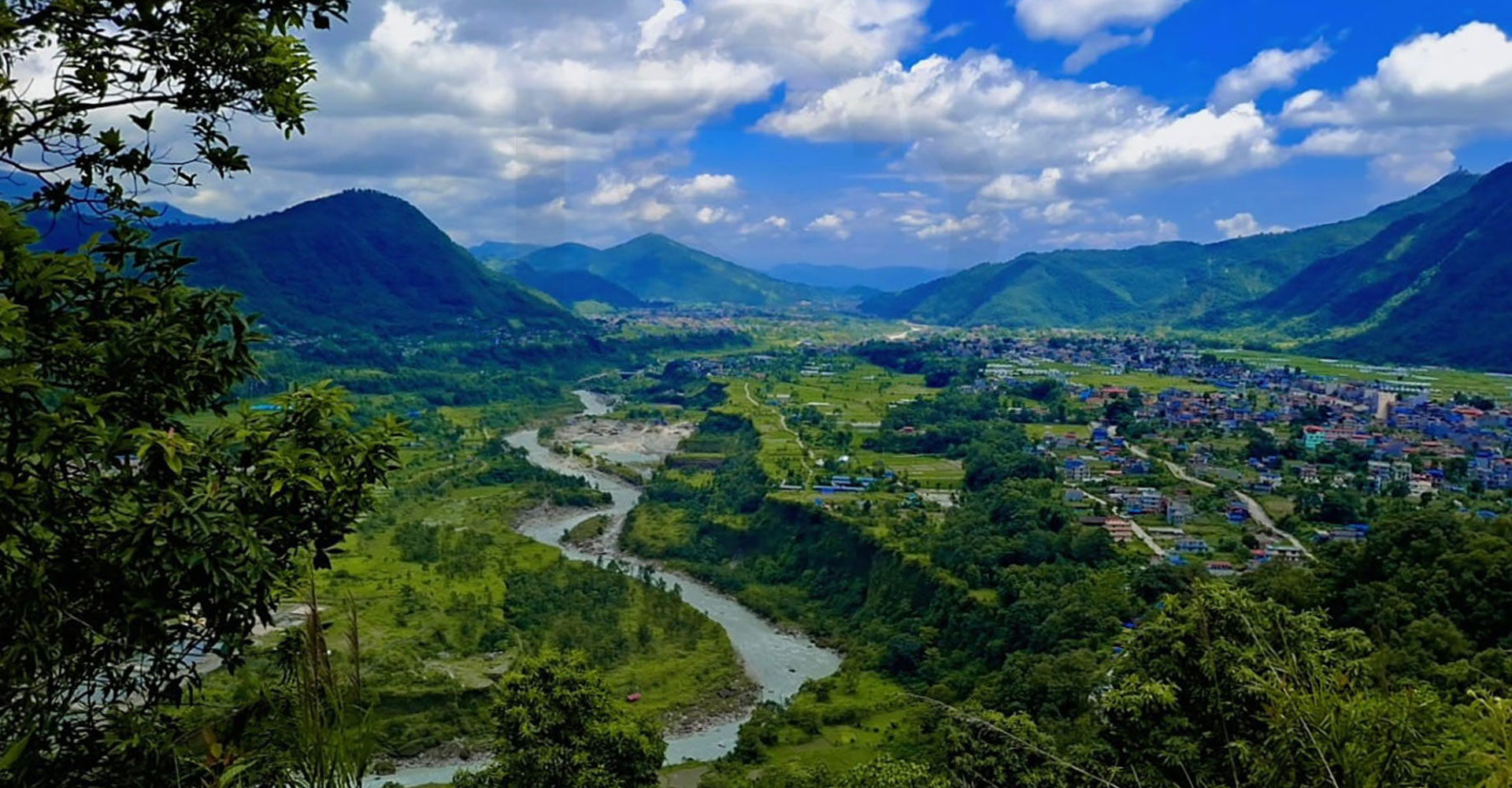 पोखरा– २५ स्थित मेल्बोटबाट बिहीबार देखिएको सेती नदी र आसपासमा रहेको हरियाली हेम्जाको दृश्य