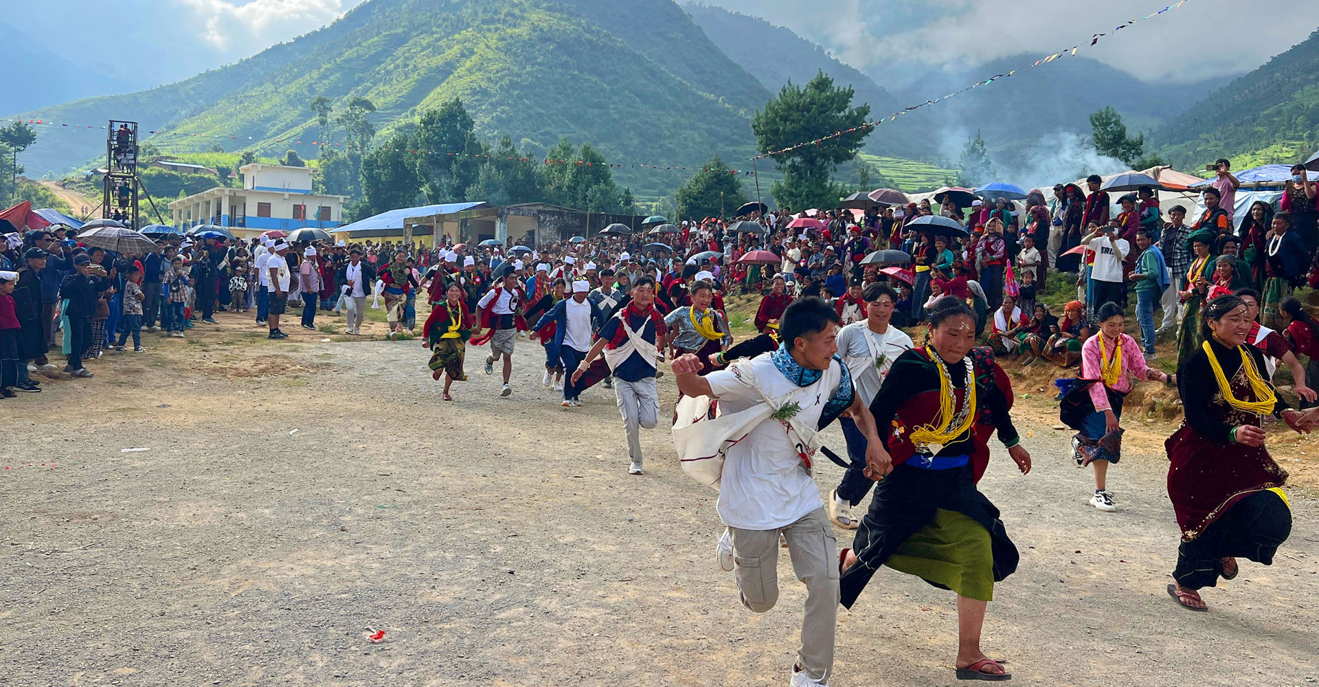 बागलुङको निसीखोला गाउँपालिका–६ मा मनाइने थामराम मेलामा हात समातेर दौडिँदै युवायुवती । पहिले–पहिले जोडी बनेर दौडीने युवायुवतीले विवाह गर्ने प्रचलन रहेकोमा अहिले त्यो प्रचलन कम हुँदै गएको छ