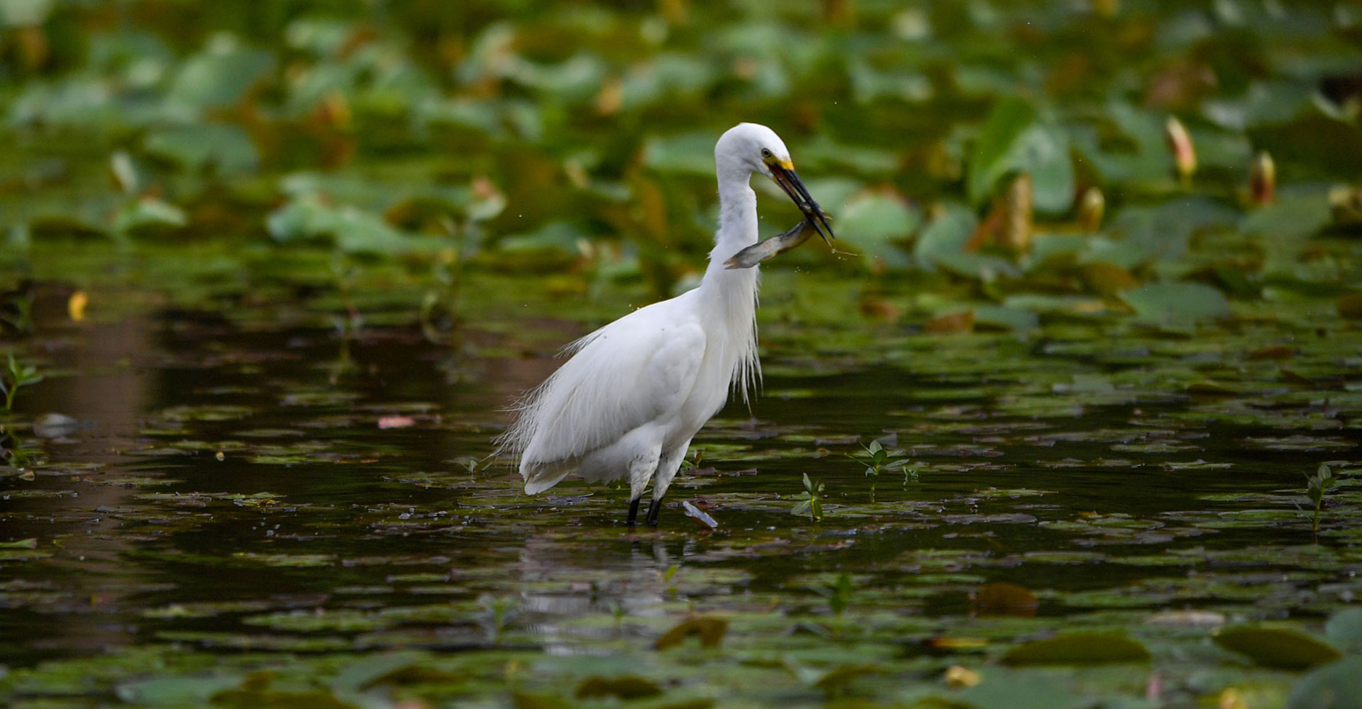 An egret preys in Dianchi Haihong wetland park in Kunming, capital of southwest China’s Yunnan Province