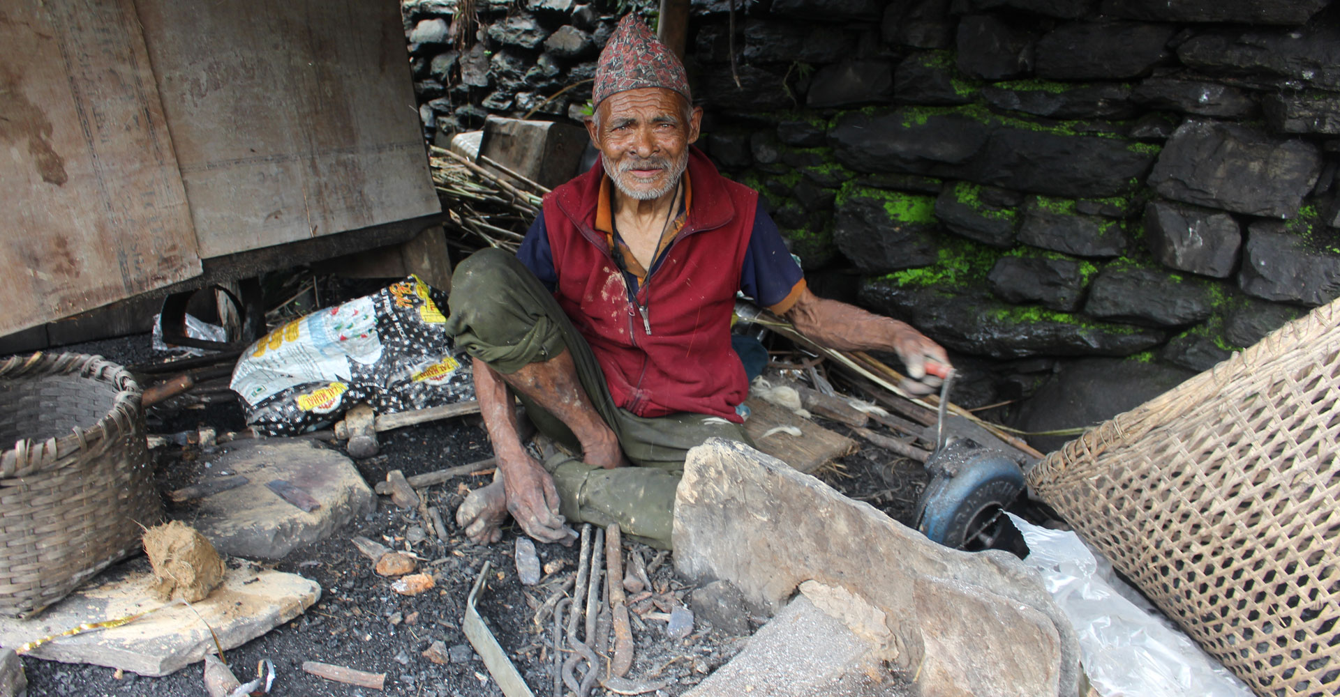 म्याग्दीको रघुगंगा गाउँपालिका– ७ चिमखोलामा आरनमा घरेलु औजार बनाउँदै शेरबहादुर विक । उहाँको परिवारले परम्परागत रुपमा सञ्चालन गर्दै आएको आरन पेसाबाट जीविकोपार्जन गर्दै आएका छन्