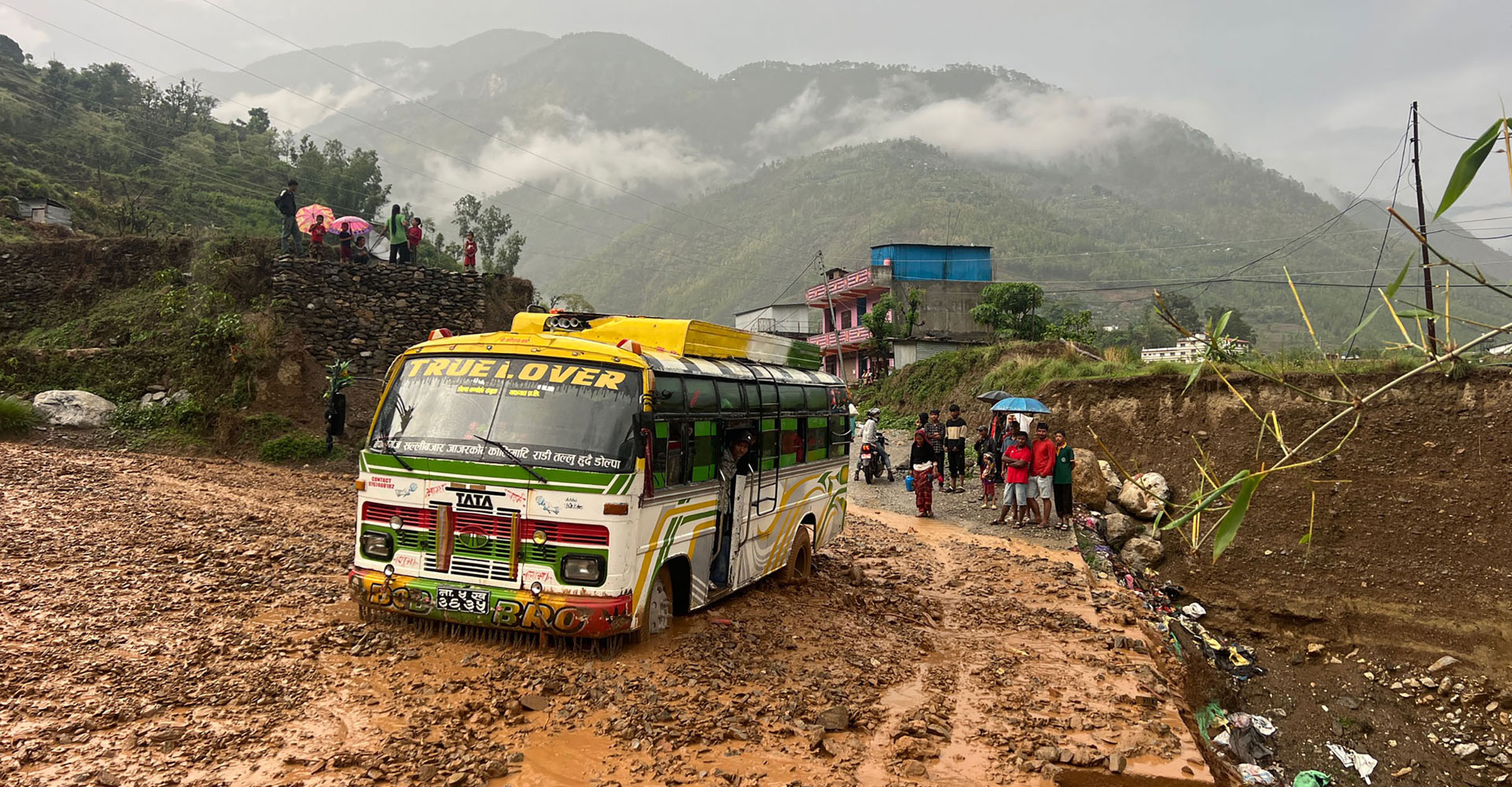 भेरी करिडोर सडक खण्ड अन्तर्गत नलगाड नगरपालिका–२ छेप्कास्थित आइतबार खोलामा भल आउदा फसेको गाडी