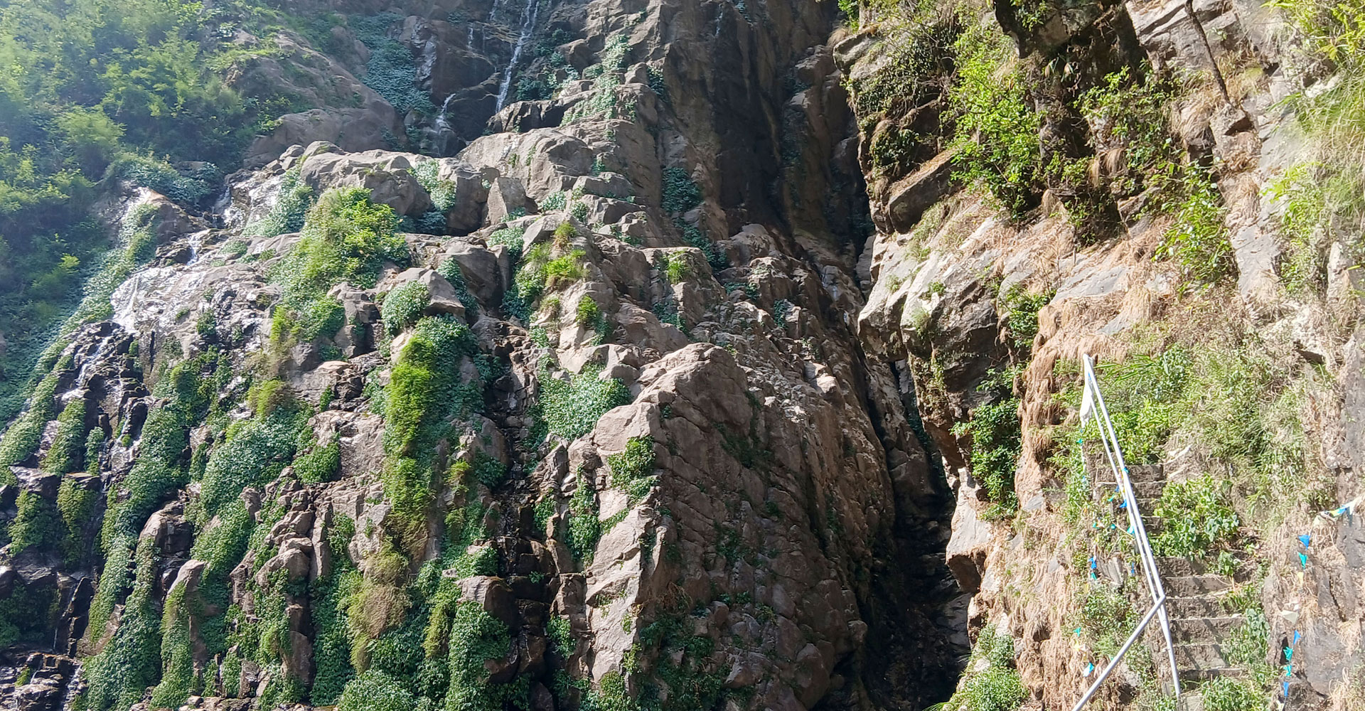पानी सुकेर सुक्खा देखिएको अन्नपूर्ण पदमार्ग अन्तर्गत लमजुङ र मनाङको सिमानामा पर्ने अक्टोपस झरना । बाह्रै महिना पानी बगिरहने यस झरनामा यसपटक बर्खा लागि सक्दा पनि पानी बगेको छैन्