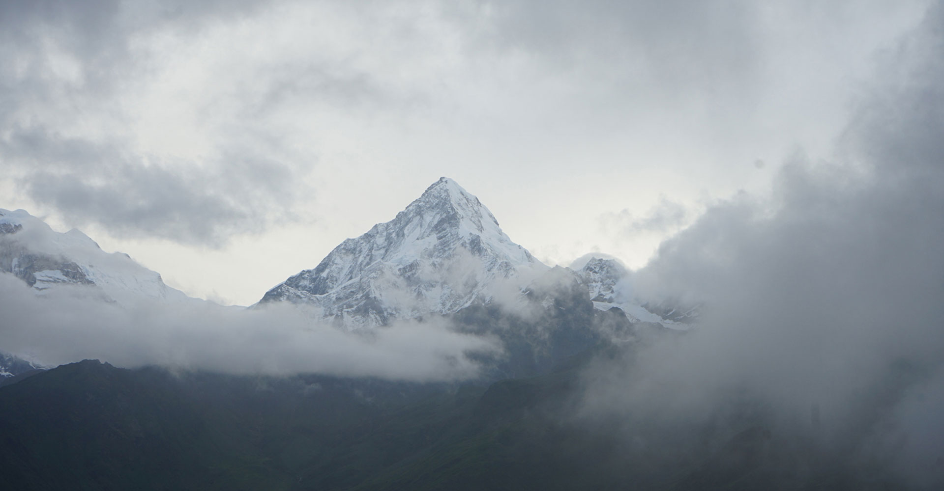 म्याग्दीको अन्नपूर्ण गाउँपालिका–५ खोप्रा (खोपारा)बाट आइतबार बिहान बादलको घुम्टोभित्र देखिएको अन्नपूर्ण हिमालको दृश्य । समुद्री सतहदेखि तीन हजार ६६० मिटर उचाईमा रहेको खोप्राबाट हिमशृङ्खला, पहाडी भूगोल र सूर्योदयको दृश्य अवलोकन गर्न सकिन्छ