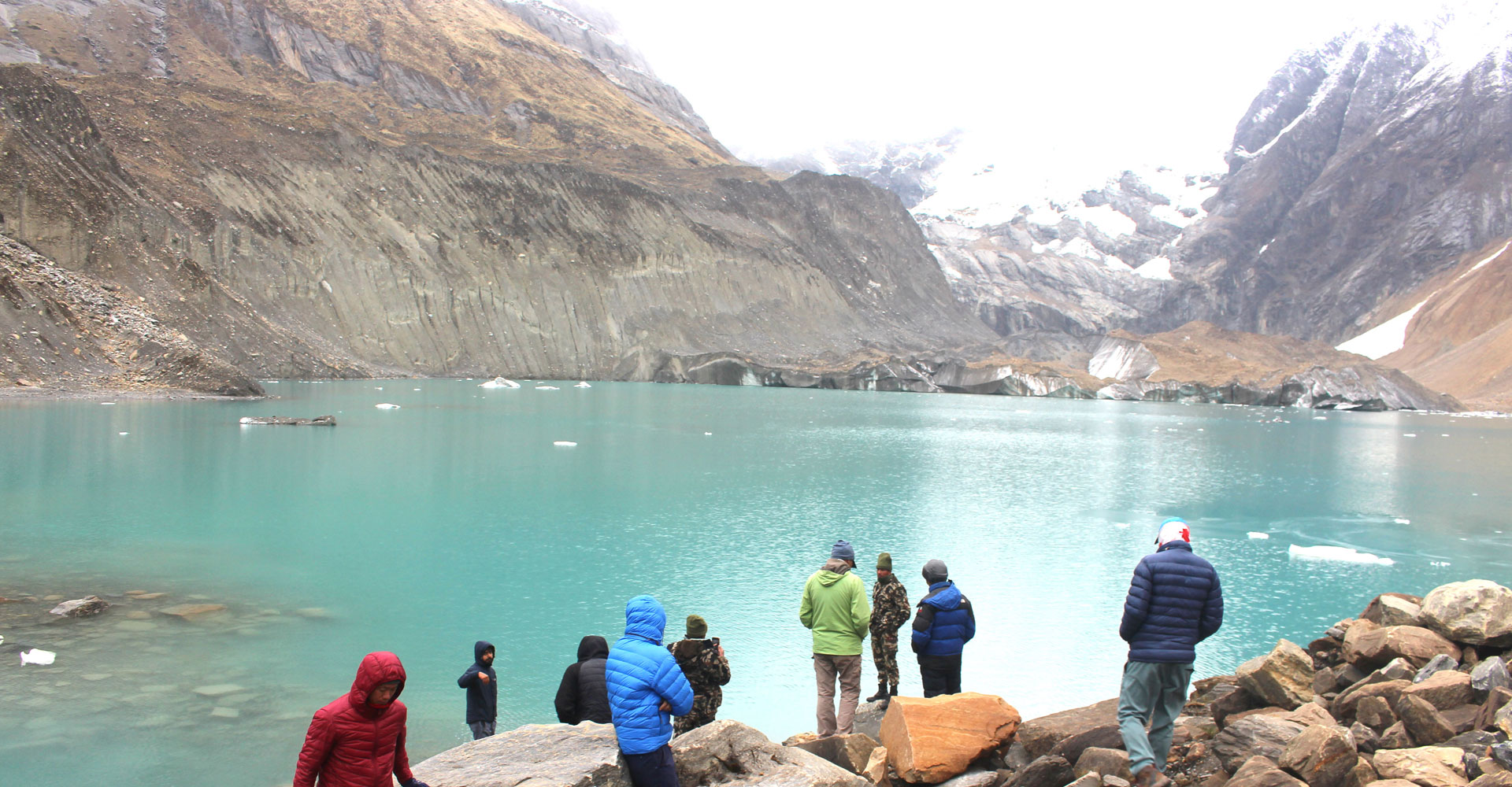 म्याग्दीको अन्नपूर्ण गाउँपालिका-४ नारच्याङमा अवस्थित अन्नपूर्ण प्रथम हिमालको आधार शिविरमा रहेको पञ्चकुण्ड तालमा मनोरञ्जन लिँदै पर्यटक । अन्नपूर्ण आधार शिविर क्षेत्रको भ्रमणमा जाने पर्यटकका लागि पञ्चकुण्ड ताल प्रमुख आकर्षण बनेको छ