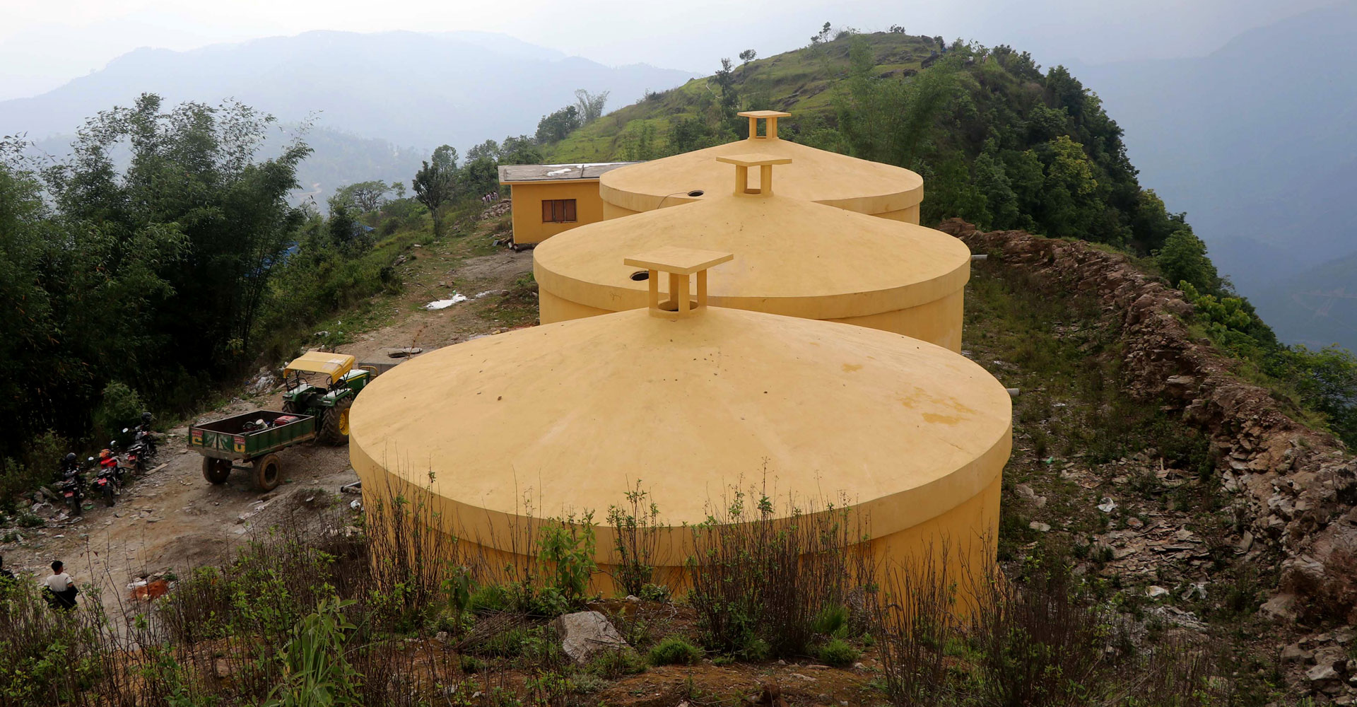 त्रिधार्मिकस्थल हलेसी क्षेत्रका नागरिकलाई दूधकोशीको पानी लिफ्टिङ गरेर वितरण गर्नेगरी काभ्रेमा निर्माण गरिएको खानेपानीको ट्याङ्की । सुख्खाग्रस्त क्षेत्रमा पर्ने हलेसीका करिब २० हजार नागरिकको घरमा खानेपानीको धारा उपलब्ध गराउन सङ्घीय सरकारको करिब रु एक अर्ब लगानीमा बृहत हलेसी लिफ्टिङ खानीपानी आयोजनाको काम सुरु गरिएको हो