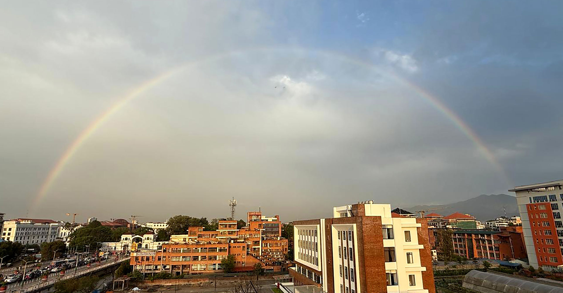काठमाडौँको भद्रकालीबाट बुधबार पानी परेपछि देखिएको इन्द्रेणीको मनोरम दृश्य