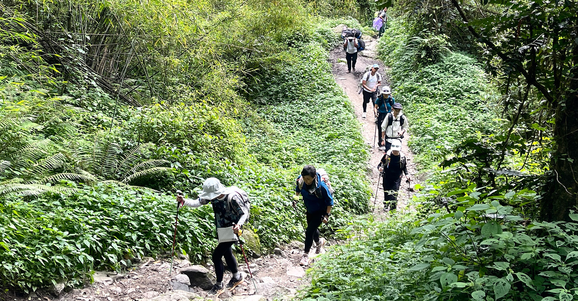 अन्नपूर्ण आधार शिविरतर्फ जाँदै गर्दा कास्कीको अन्नपूर्ण गाउँपालिका– ११ स्थित ब्याम्बोमा मङ्गलबार भेटिएका आन्तरिक एवं विदेशी पर्यटकहरु