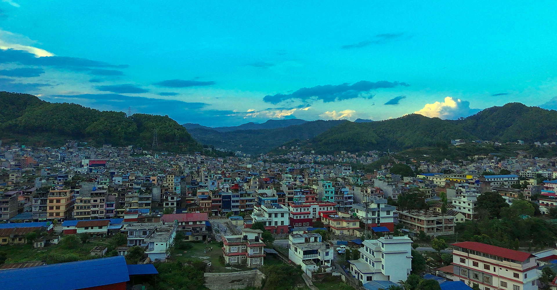 तनहुँको सदरमुकाम दमौली बजार र आसपासको शुक्रबार साँझपख देखिएको दृश्य
