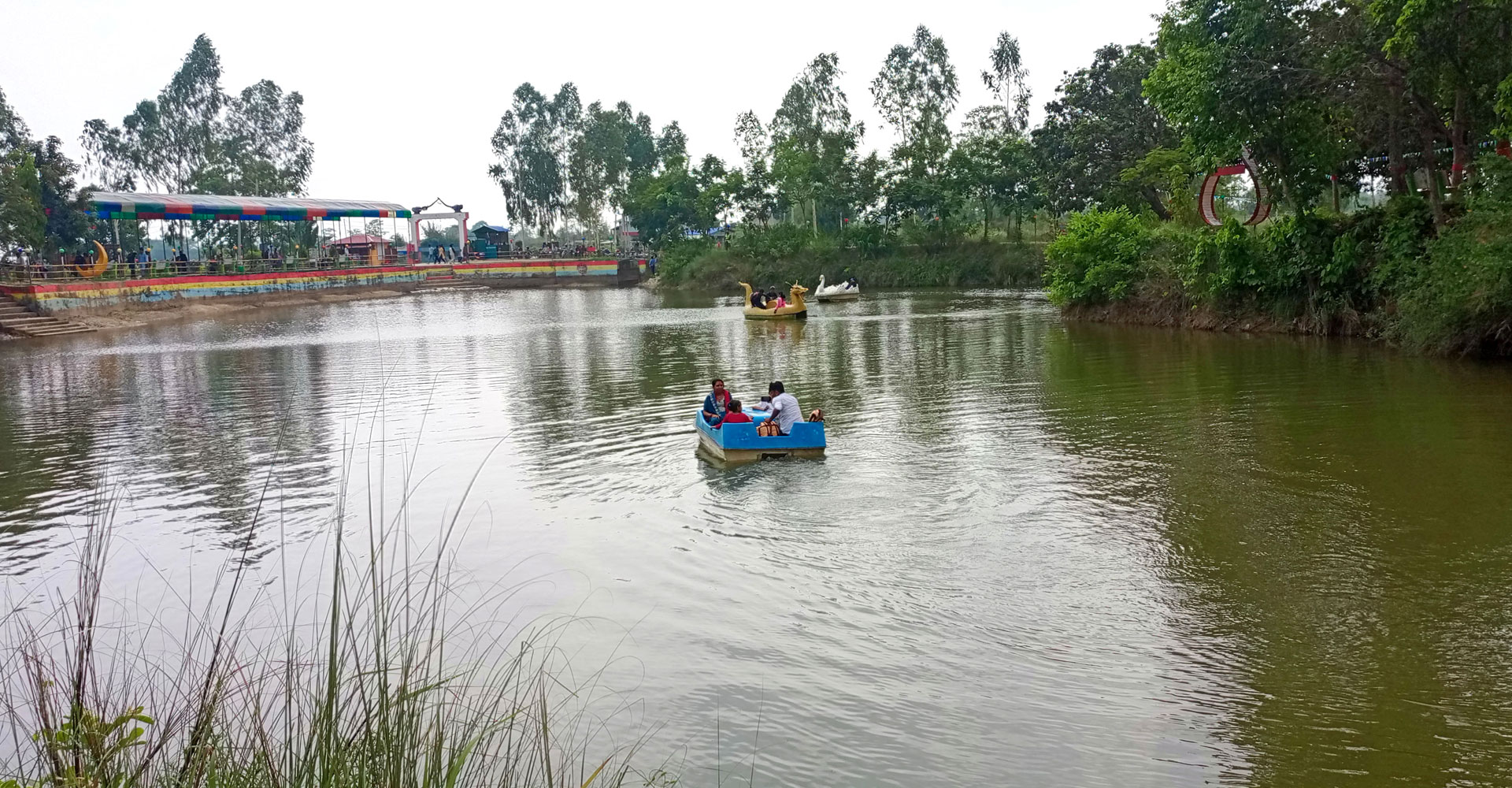 सिरहाको लहान नगरपालिका—१५ मा अवस्थित हाथीदहमा जल विहार गर्दै आन्तरिक पर्यटक। यो ठाउँलाई कोइरालो खोला नमुना सामुदायिक वन उपभोक्ता समूहले व्यवस्थित गरी सञ्चालन गर्दै आएका छन्