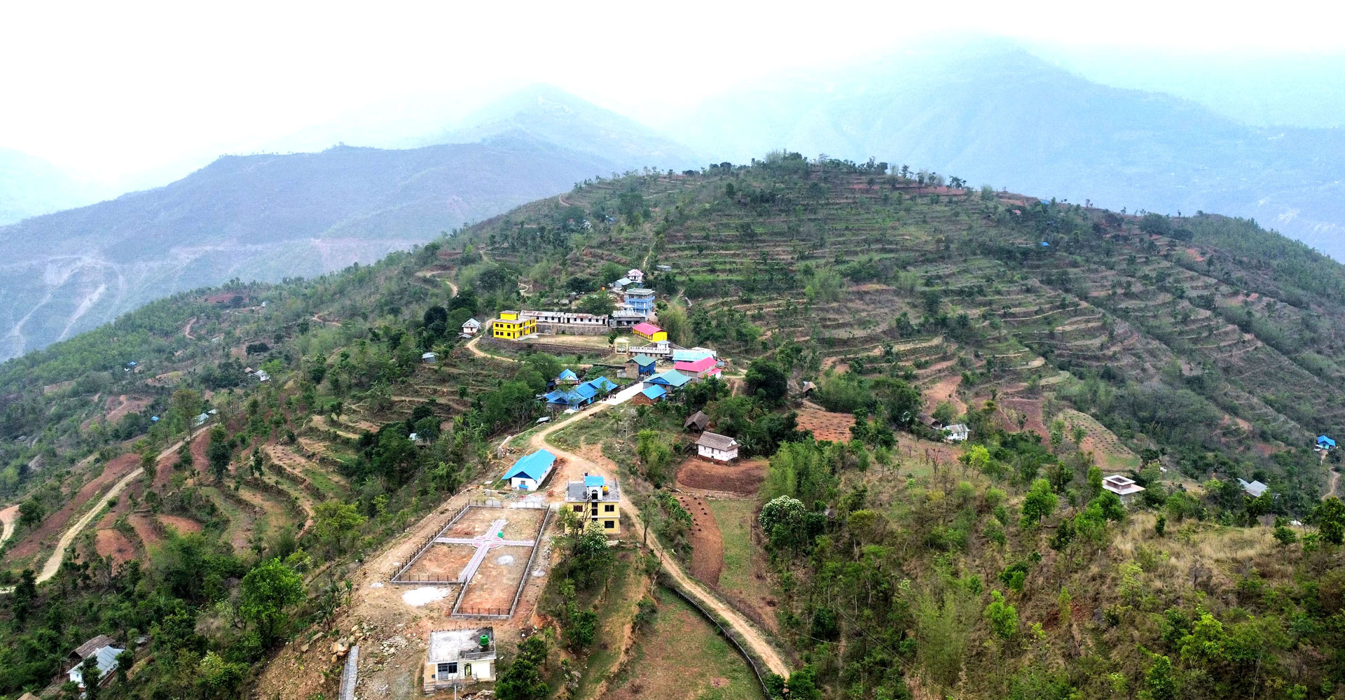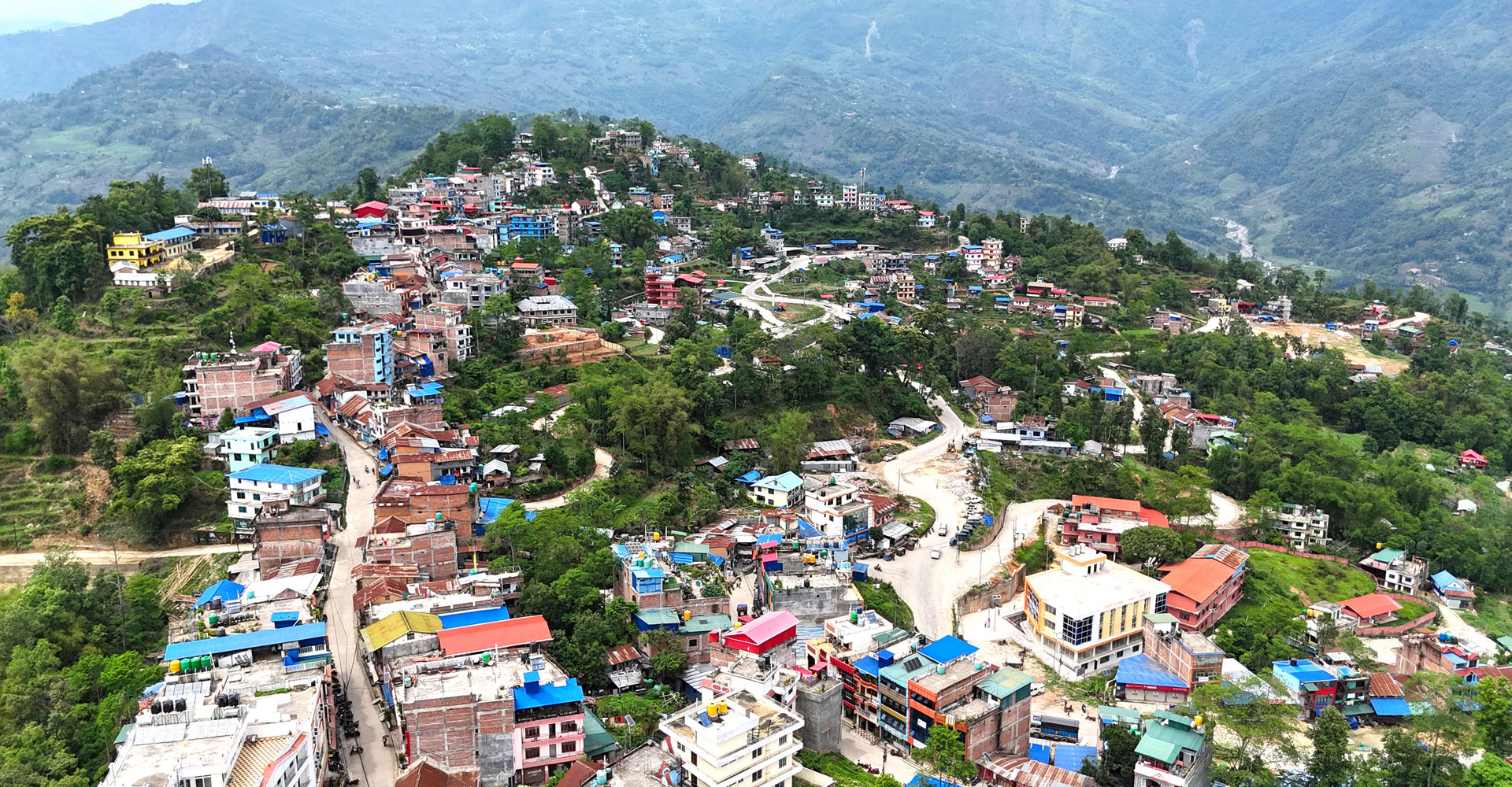 ड्रोनबाट खिचिएको सङ्खुवासभाको सदरमुकाम खाँदबारी बजार र आसपासका क्षेत्र