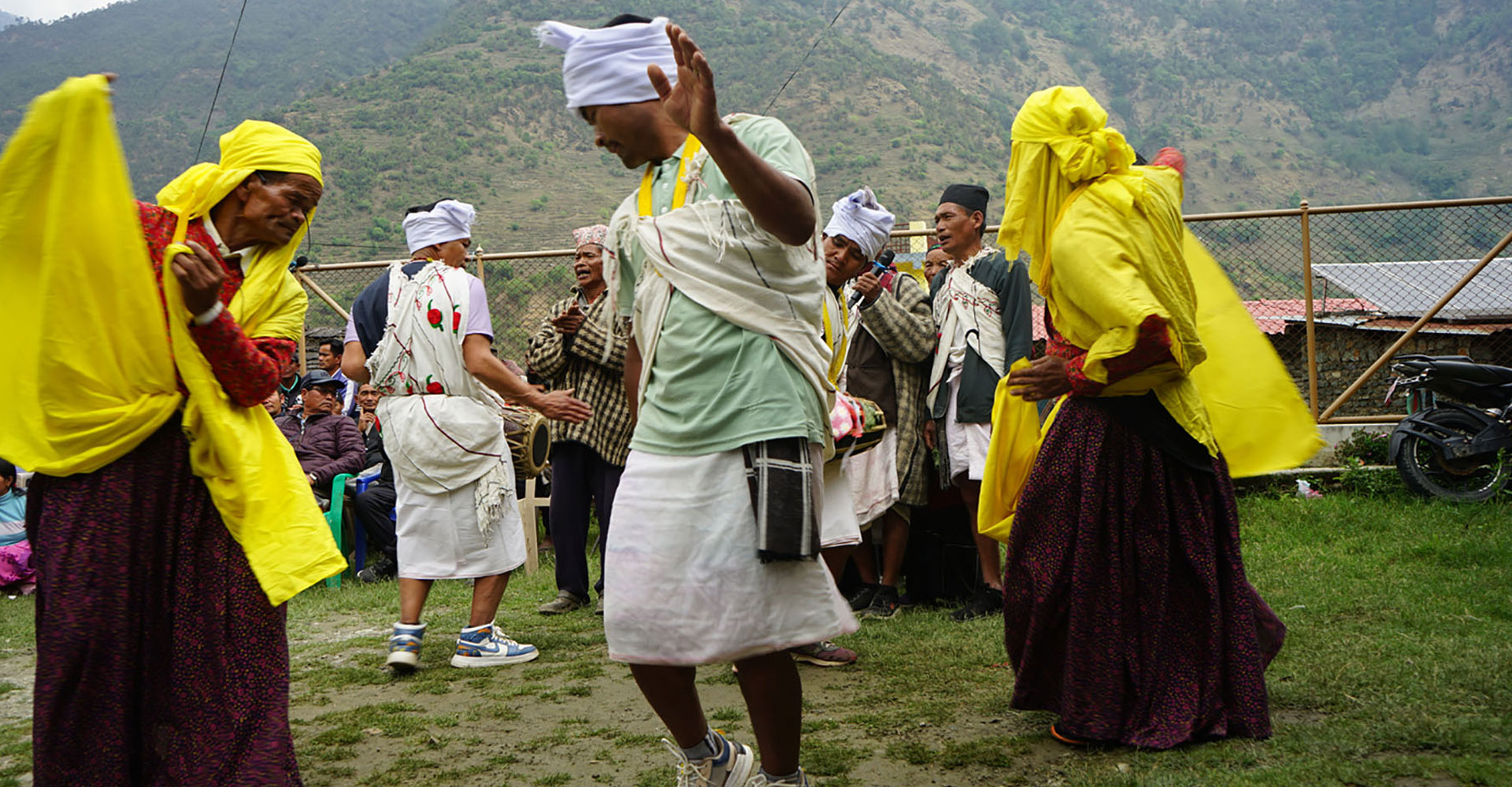 म्याग्दीको धवलागिरी गाउँपालिका–३ मुुनामा शनिबार आयोजित मौलिक नृत्य प्रतियोगितामा पुख्र्यौली नाच प्रस्तुुत गर्दै खिवाङका कलाकार । मौलिक लोक संस्कृतिको संरक्षण गर्ने उद्देश्यले धवलागिरि गाउँपालिकाले प्रतियोगिताको आयोजना गरेको हो