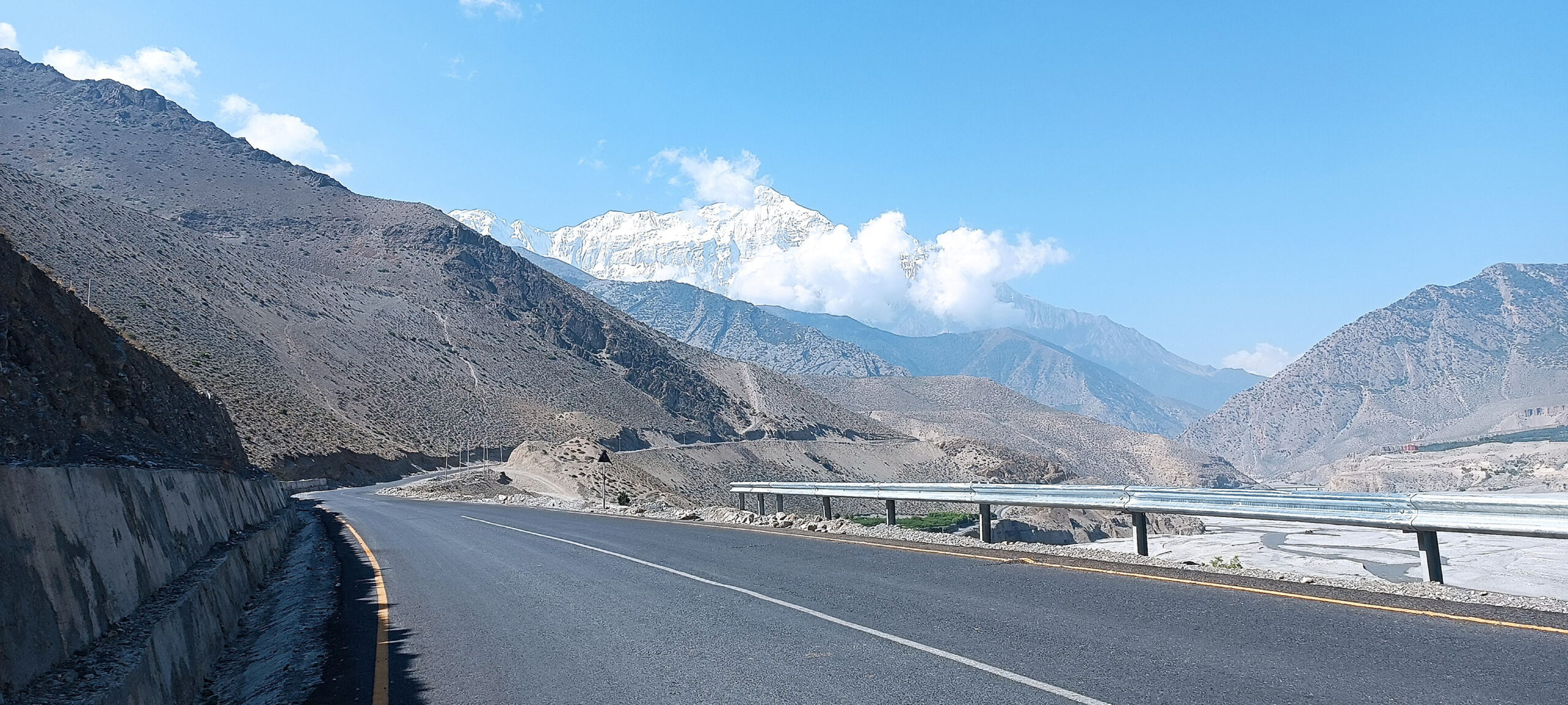 जोमसोम–मुक्तिनाथ सडकखण्ड : मुस्ताङको वारागुङ मुक्तिक्षेत्र गाउँपालिका–४ कागबेनी नजिकैको बेनी–जोमसोम–कोरोला सडक खण्डअन्तर्गत जोमसोम–मुक्तिनाथ कालोपत्र सडक र पृष्ठभूमिमा निलगिरि हिमाल । सडक कालोपत्र भएपछि पर्यटकलाई मुस्ताङ घुम्न आउन सहज भएको छ