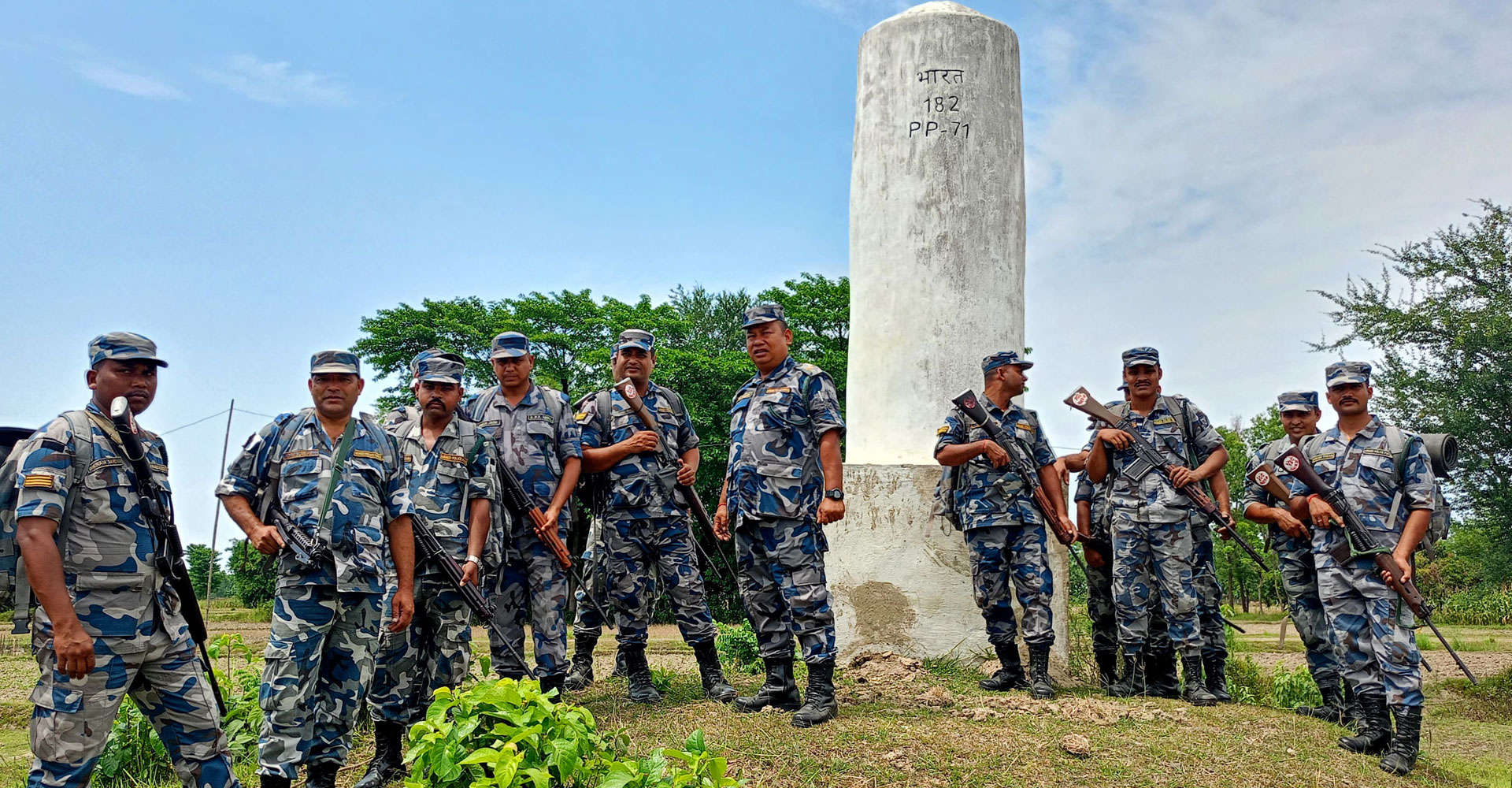 सुनसरीको देवानगन्ज गाउँपालिकाको साहेवगन्जस्थित नेपाल–भारत सीमा क्षेत्रमा रहेको जङ्गे पिलरमा सीमा सुरक्षार्थ खटिएका सशस्त्र प्रहरी । भारत–पाकिस्तानको द्वन्द्व बढेसँगै सशस्त्र प्रहरीले नेपाल–भारत सीमा क्षेत्रमा सतर्कता अपनाएको छ