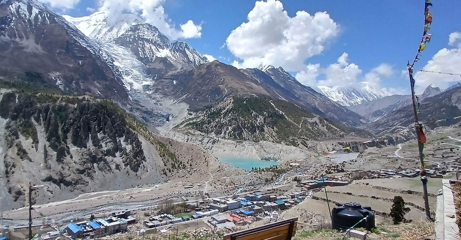 मनाङ ङिस्याङ गाउँपालिका–६ मा अवस्थित मनाङ गाउँको पृष्ठभूमिमा गङ्गापूर्ण हिमाल, ग्लेसियर र गङ्गापूर्ण ताल । गाउँको नामबाट नै जिल्लाको नामकरण गरिएको हो