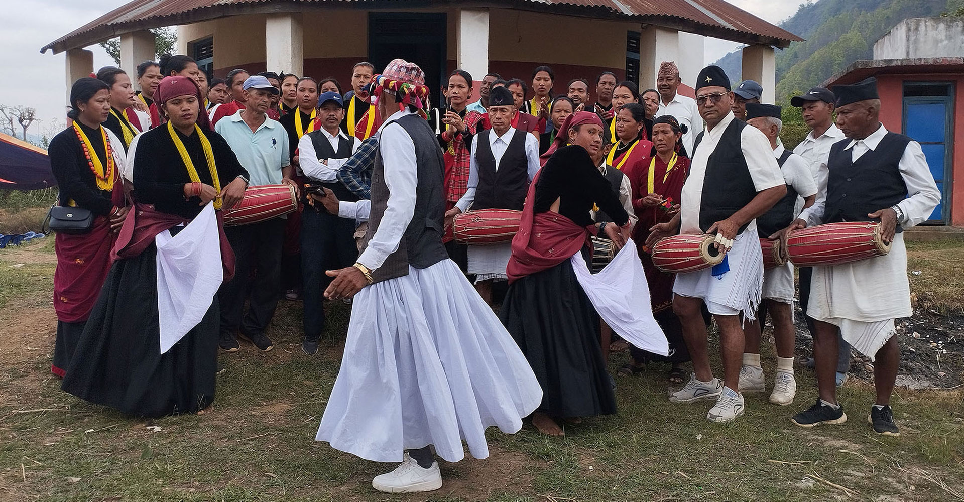 तनहुँको व्यास नगरपालिका–९ स्थित कुमाल गाउँमा आयोजित संस्कृति संरक्षण कार्यक्रमअन्तर्गत पाउदुरे नाच सिक्दै कुमाल समुदाय । कुमाल समाज तनहुँको आयोजना र सामाजिक विकास कार्यालयको सहयोगमा संस्कृति संरक्षणका लागि आयोजित प्रशिक्षण कार्यक्रम यही वैशाख २१ गतेसम्म सञ्चालन हुनेछ