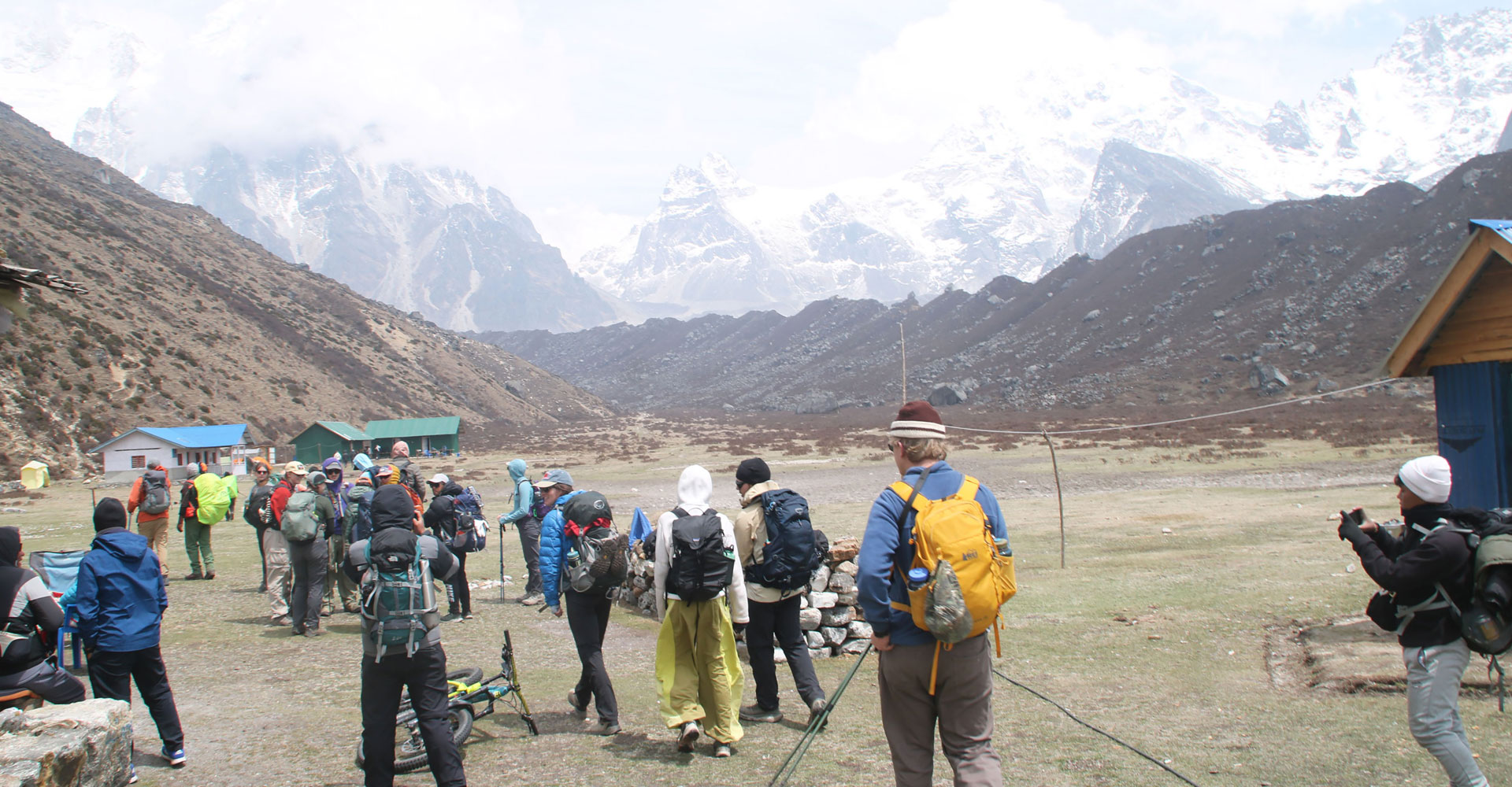 सगरमाथा क्षेत्रमा पर्यटको चाप उच्च । मुख्य पर्यटकीय सिजन भएकाले यो समय सोलुखुम्बुको खुम्बु क्षेत्र पुग्ने पर्यटकहरु धेरै छन्