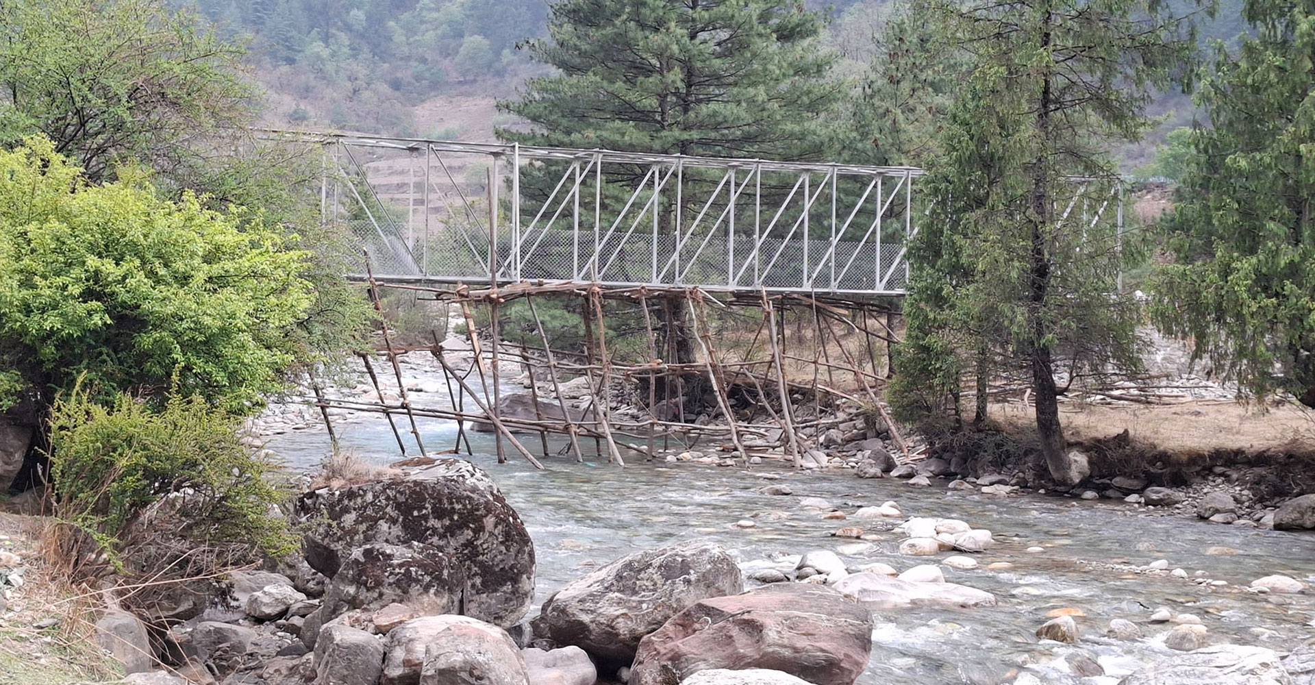 जगदुल्ला गाउँपालिका–२ काइगाउँस्थित जगदुल्ला खोलामा टेको लगाएको पुल