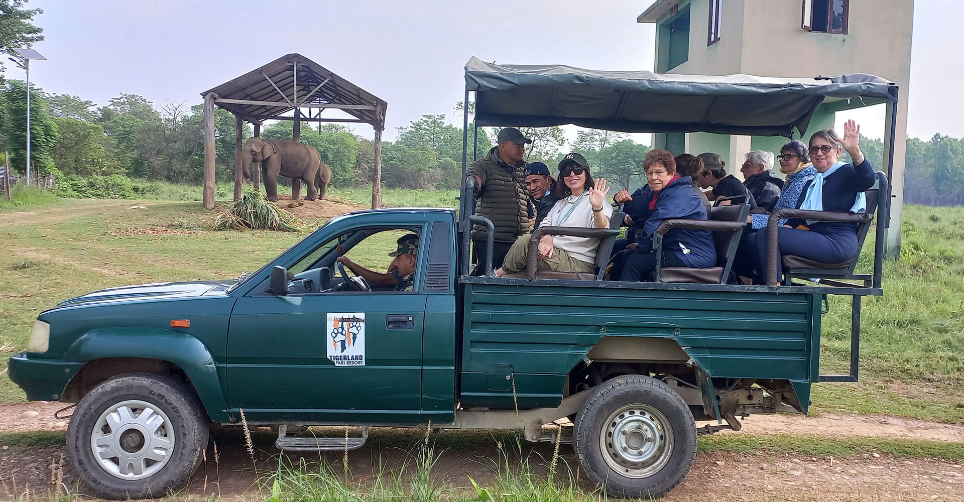 चितवन राष्ट्रिय निकुञ्जमा जङ्गल सफारी गरी मनोरञ्जन लिँदै पर्यटक