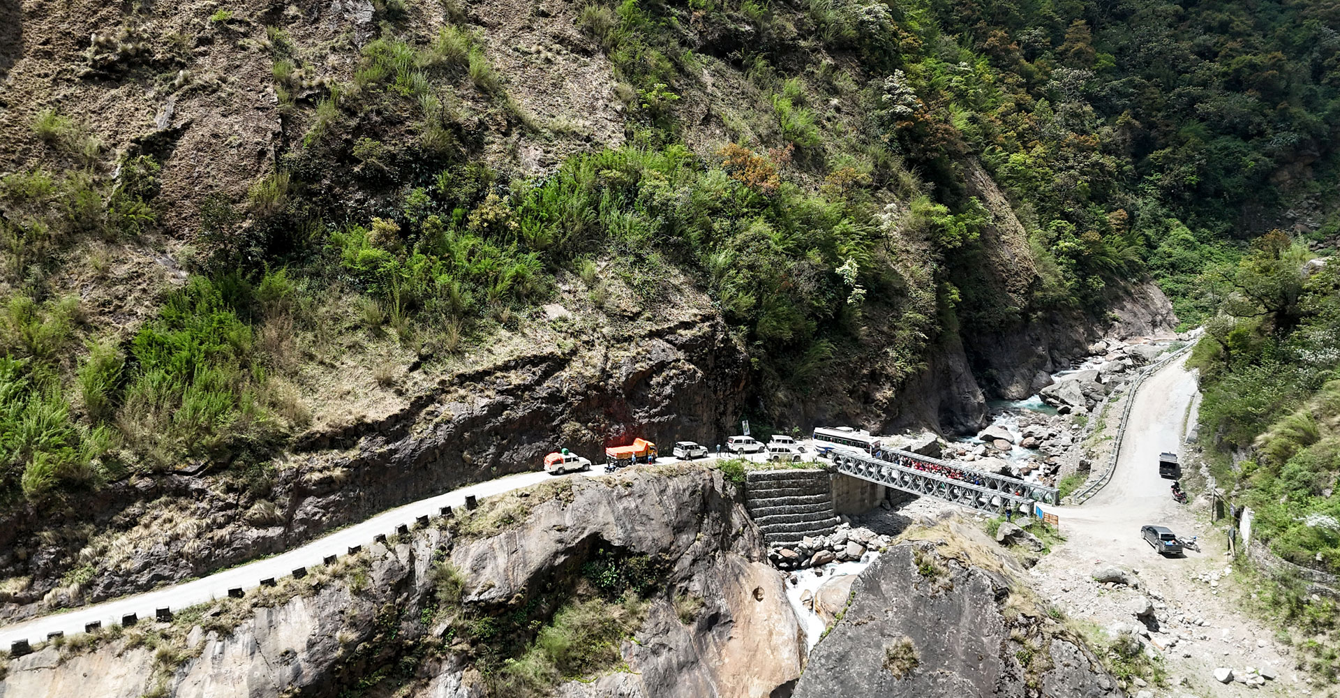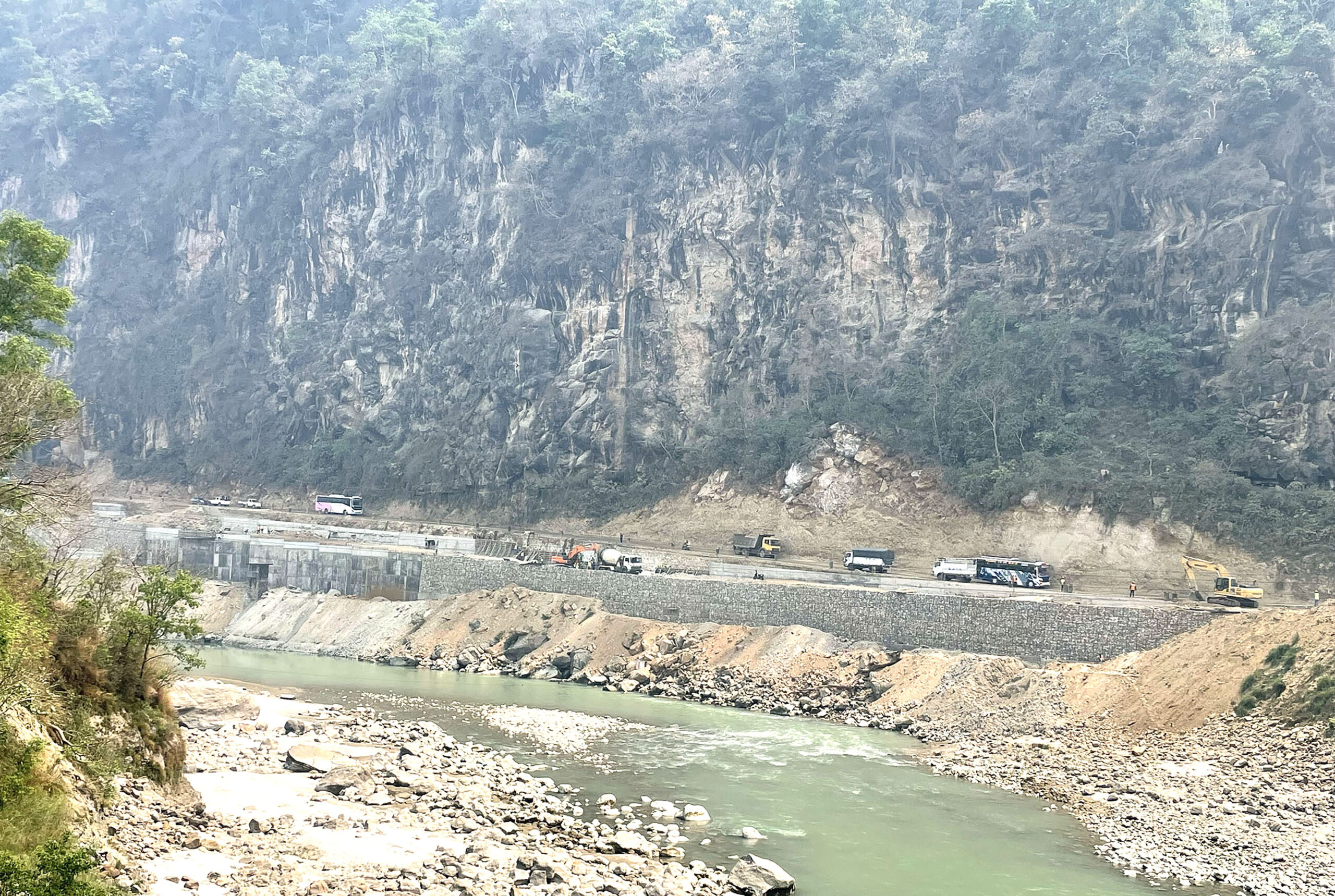 निर्माणाधीन सडक : मुग्लिन पोखरा सडक विस्तारअन्तर्गत तनहुँको बन्दीपुर गाउँपालिका–४ विमलनगरस्थित मस्र्याङ्दी नदी किनारमा निर्माण हुँदै गरेको सडक । विमलनगरमा एकातर्फ चट्टान रहेकाले नदी किनार माथिबाटै सडक निर्माणको काम भइर