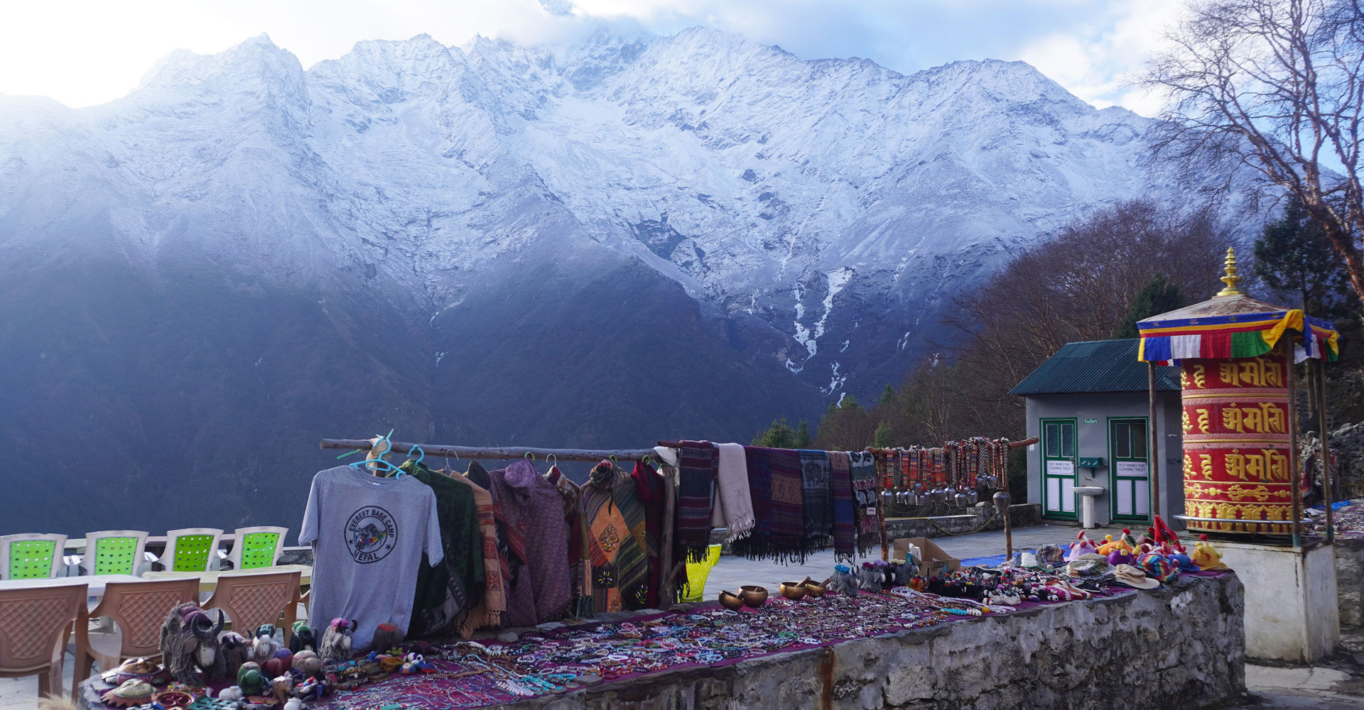 सोलुखुम्बुको खुम्बु पासाङल्हामु गाउँपालिको क्याङजु गाउँस्थित बाटो छेउमा बेच्न राखिएका न्यायो कपडा, मालालगायतका सामग्री। सगरमाथा आधार शिविरतर्फ जाने र फर्कने पर्यटकहरुले आवश्यक सामान किन्ने गर्छन्