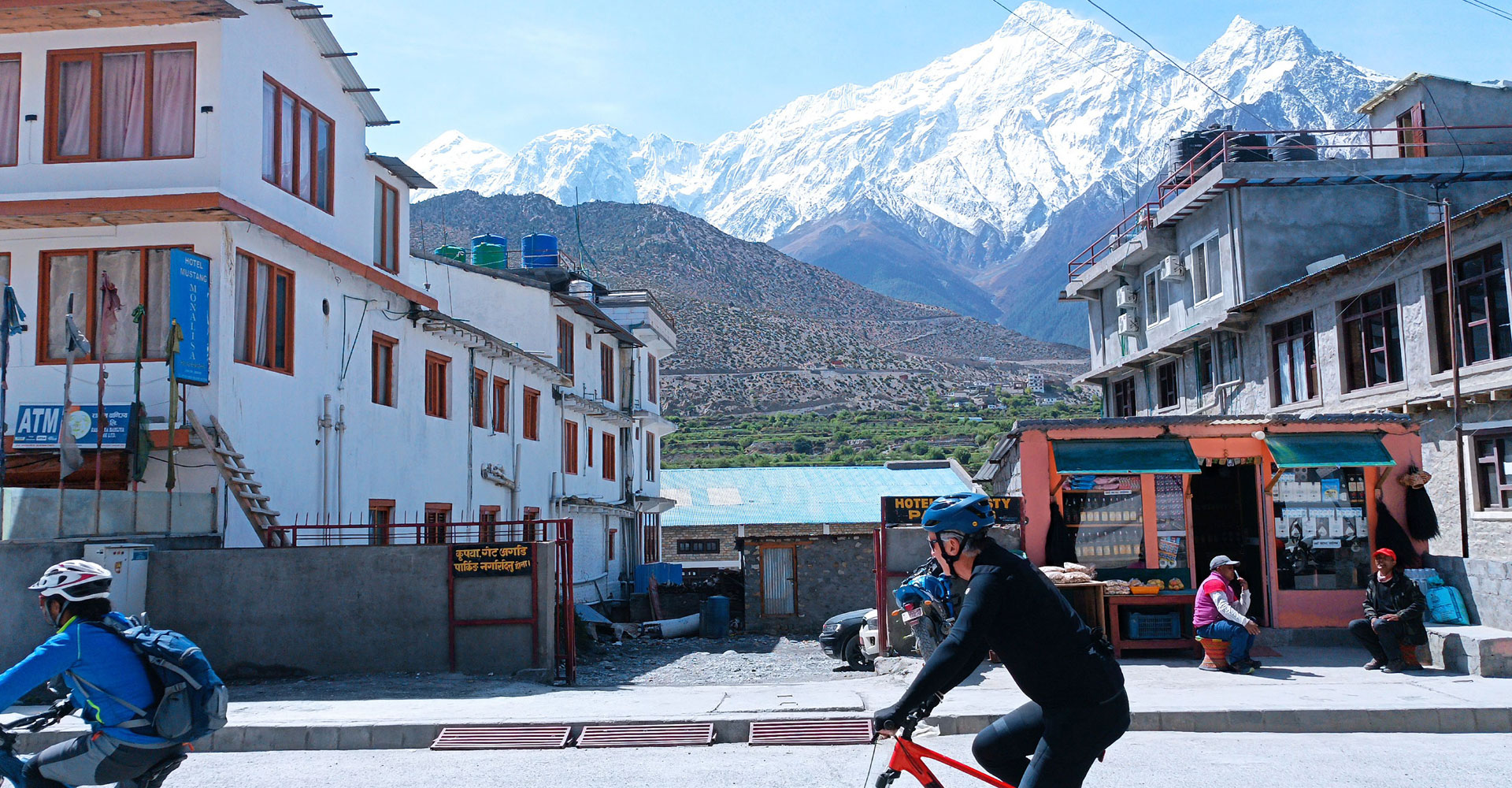 मुस्ताङको घरपझोङ गाउँपालीका–३ स्थित जोमसोम बजार र पृष्ठभूमिमा निलगिरी हिमाल । मौसम खुलेसँगै जोमसोम आसपासका क्षेत्रहरु थप मनोरम देखिएसँगै पर्यटकहरु हर्षित भएका छन्