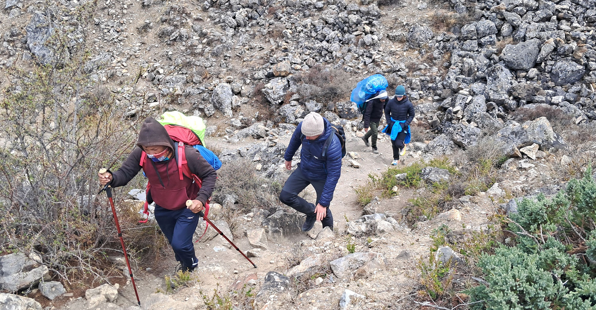 राउण्ड अन्नपूर्ण चर्किय पदमार्ग अन्तर्गत हिमाली जिल्ला मनाङबाट थोरोङ्ला हुँदै मुक्तिनाथ क्षेत्रतर्फ पदयात्रा गरिरहेका विदेशी पर्यटक