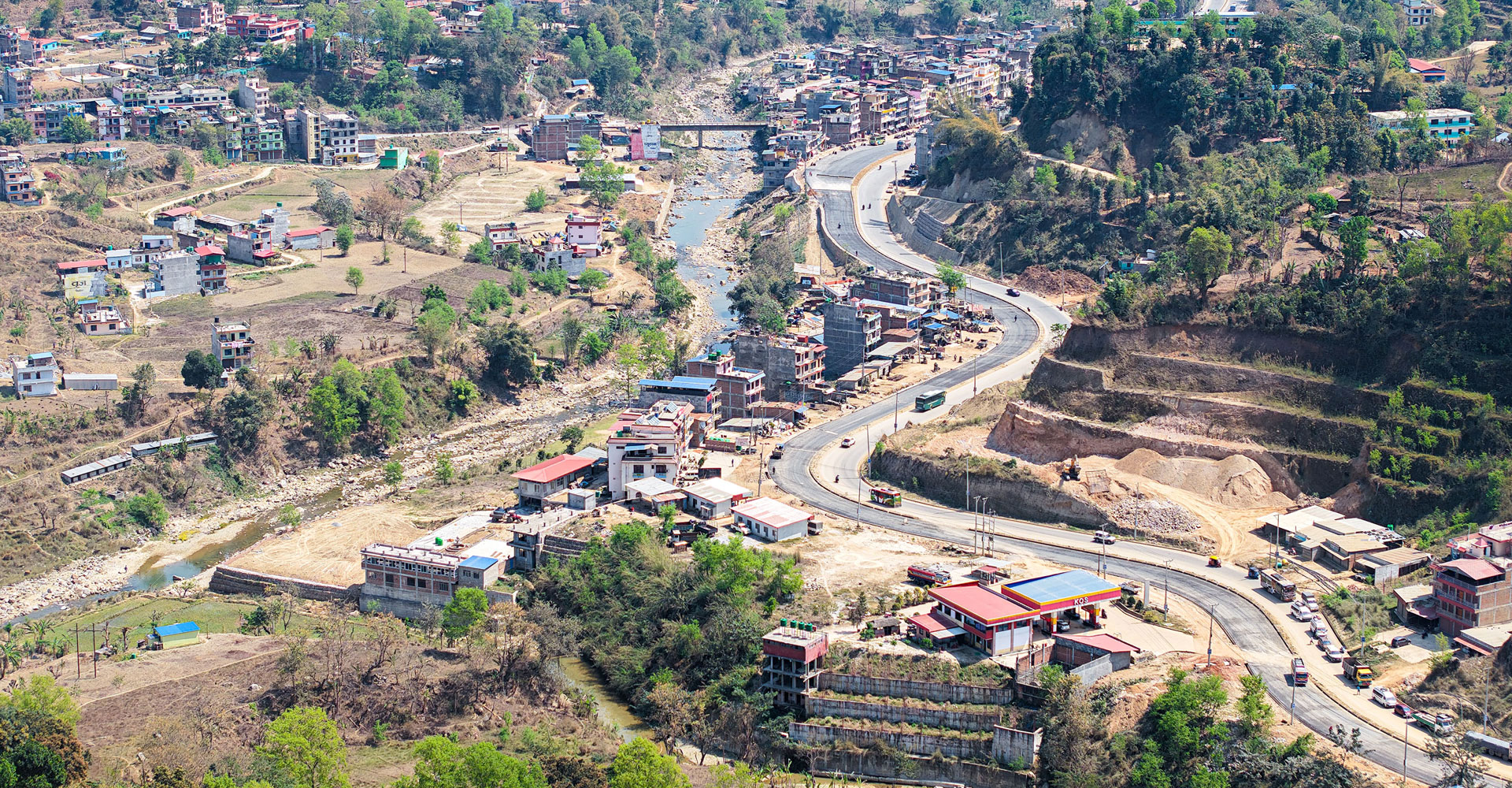 लमजुङ र मनाङ प्रवेश गर्ने व्यापारिक केन्द्र डुम्रे आसपासको दृश्य । मुग्लिङ–पोखरा सडक वस्तार गरिएपछि यात्रुहरुलाइ सहज बन्दै गएको छ