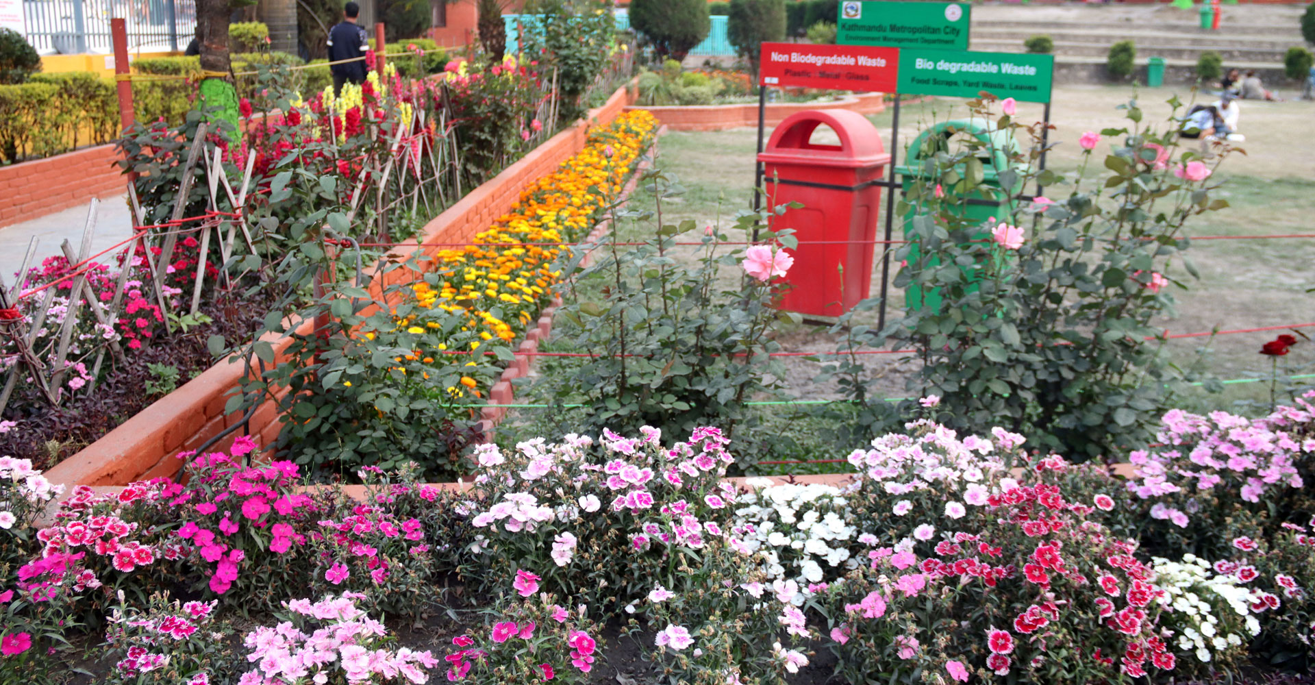 काठमाडौँ महानगरपालिका– ४ मा अवस्थित शङ्खपार्कमा फुलेका विभिन्न रङ्गीचङ्गी फूल