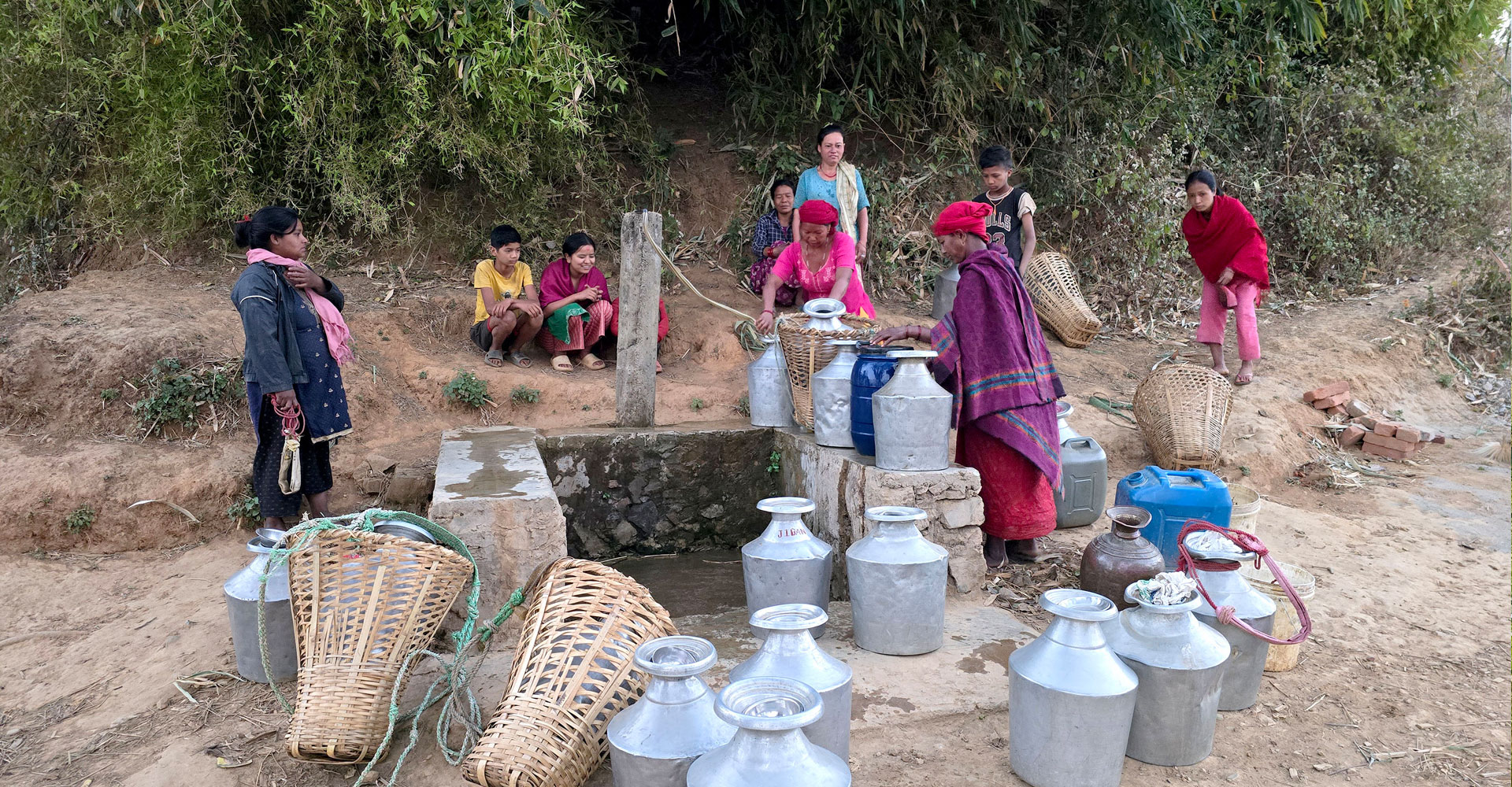 दाङको घोराही उपमहानगरपालिका-१८ स्थित घोरदौराका स्थानीय शनिबार बिहान धारामा खानेपानी भर्दै । नजिकमा पानीको मुहान नहुँदा यहाँका १८ घरधुरीले दैनिक एक घण्टा आउने एउटा सार्वजनिक धाराबाट खानेपानीको जोहो गर्ने गर्दछन्