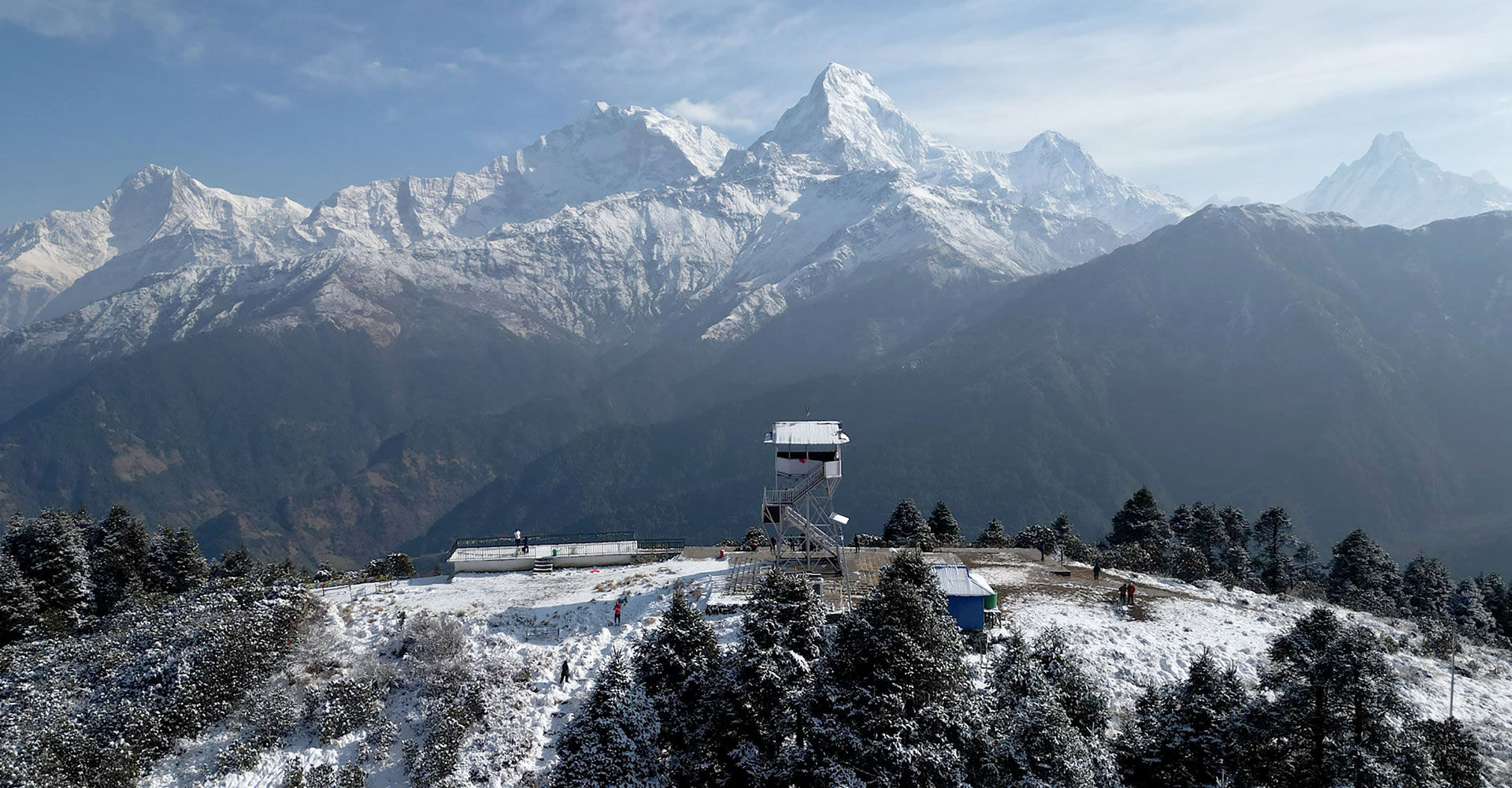 म्याग्दीको अन्नपूर्ण गाउँपालिका–६ मा अवस्थित पुनहिलमा ड्रोनबाट आइतबार बिहान खिचिएको अन्नपूर्ण हिमशृङखलाको दृश्य । समुन्द्रि सतहदेखि ३ हजार २१० मिटरको उचाइमा रहेको पुनहिलमा सुर्योदय, हिमशृङखला, गुरासे जङ्गल र पहाडी भूगोलको दृष्य अवलोकन गर्न सकिन्छ