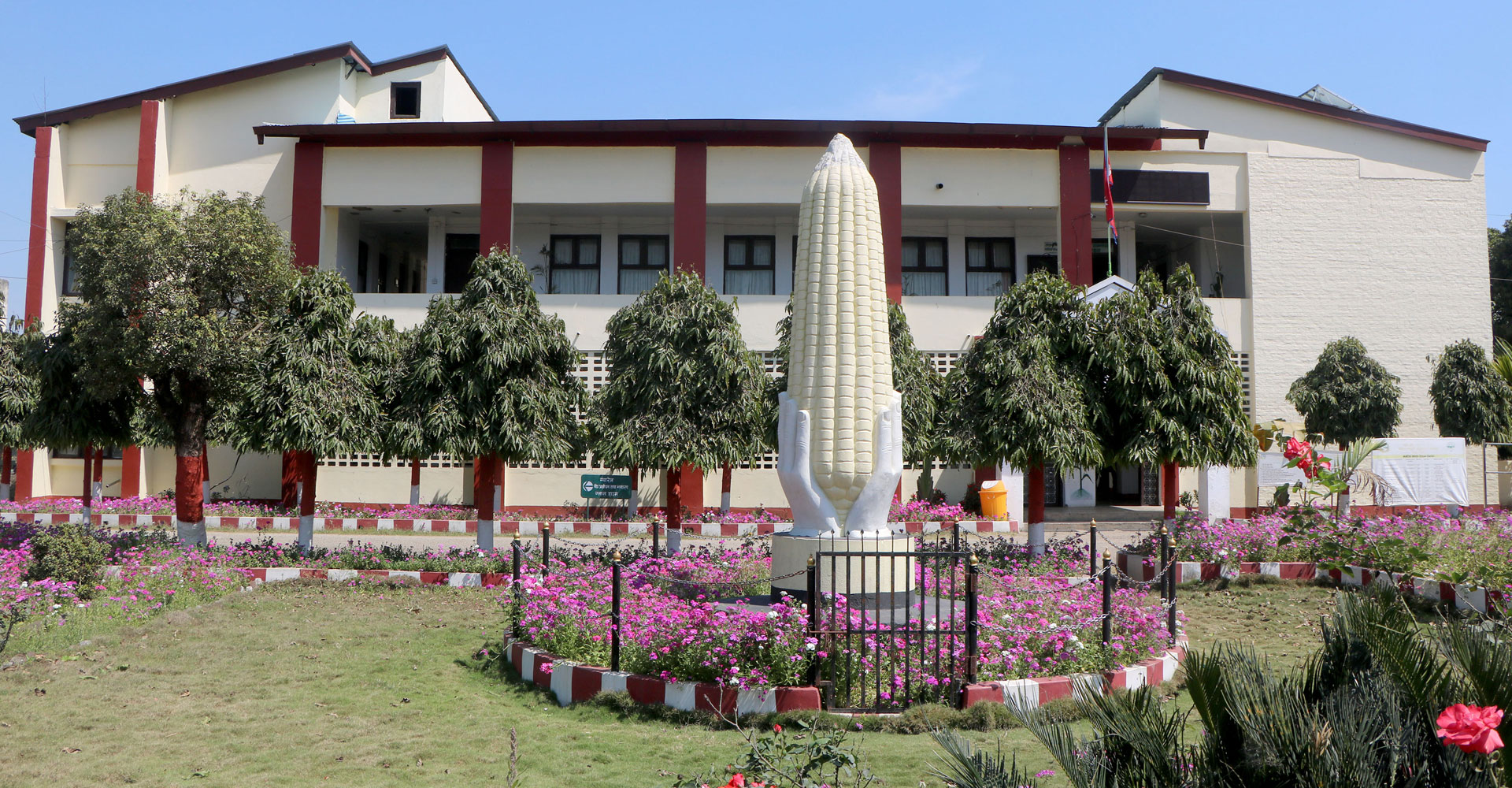 राष्ट्रिय मकैबाली अनुसन्धान कार्यक्रम रामपुर चितवनको कार्यालय परिसरमा राखिएको मकैको प्रतिमा