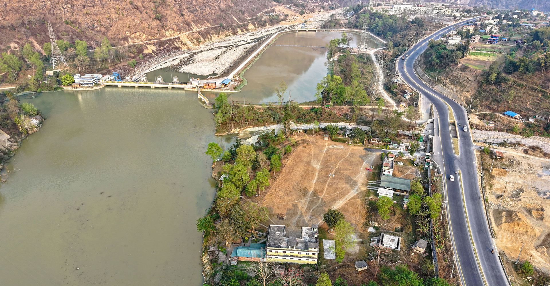 तनहुँको आँबुखैरेनी गाउँपालिका–२ मार्कीचोकस्थित मस्र्याङ्दी जलविद्युत केन्द्रको जलाशयसँगै रहेको मुग्लिन–पोखरा सडकखण्डमा पर्ने चार लेनको फराकिलो चिटिक्क कालोपत्रे सडक । पूर्वी खण्डमा सडक विस्तार कार्य करिब ८० प्रतिशत भौतिक प्रगति भएको आयोजनाले जनाएको छ