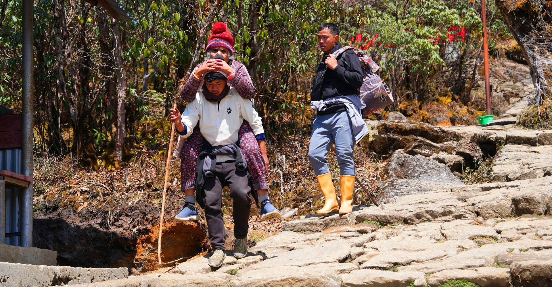ताप्लेजुङको प्रसिद्ध तीर्थस्थल पाथीभरा मन्दिरको दर्शन गरी भरियामार्फत् घर फर्कँदै गरेका तीर्थयात्री । हिँड्न नसक्ने भक्तजनहरूले भरियाको सहयोगमा पाथीभराको दर्शन गर्ने गरेका छन्