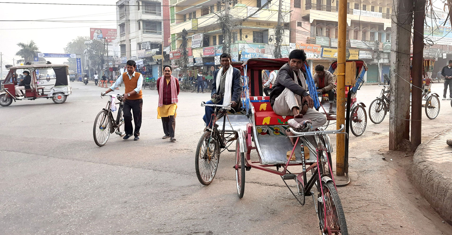 वीरगञ्जको घण्टाघरचोकमा यात्रुको प्रतिक्षामा बसेका रिक्साचालक । उनीहरु भन्छन् ‘पछिल्लो समय रिक्सा चढ्ने यात्रु घटेपछि यहाँ रिक्सा चलाउनेले दैनिक मुस्किलले रु ५०० कमाई गर्ने भएकाले घरपरिवारको गुजारा चलाउन पनि गाह्रो भइरहेको छ